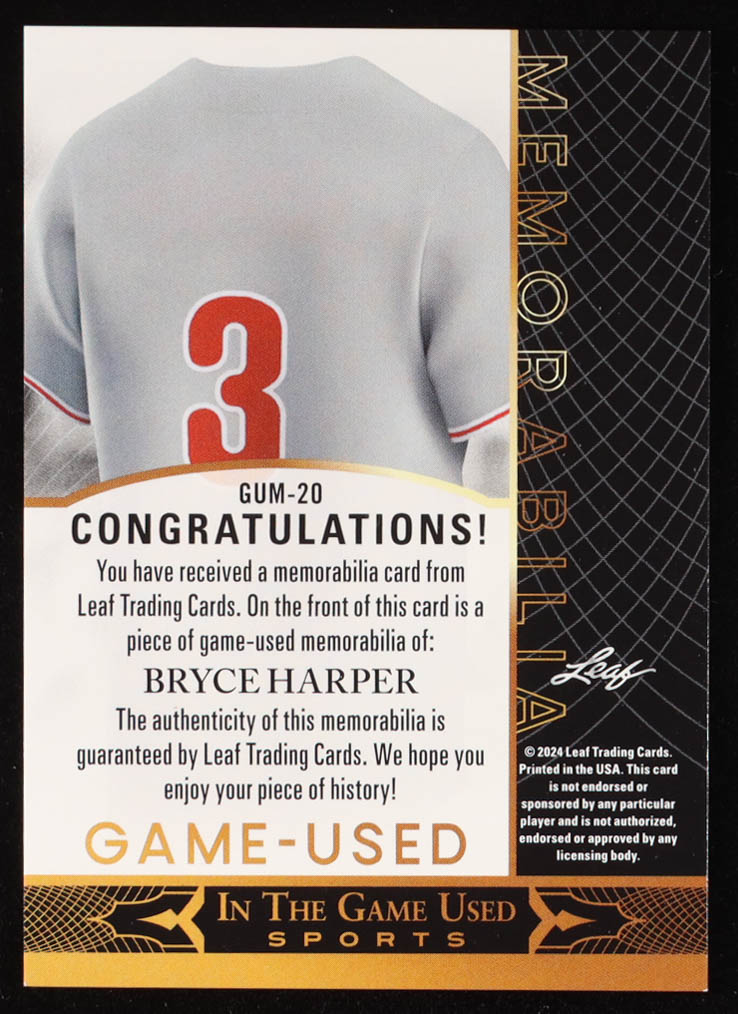 Bryce Harper 2024 Leaf In The Game Used Memorabilia #GUM20