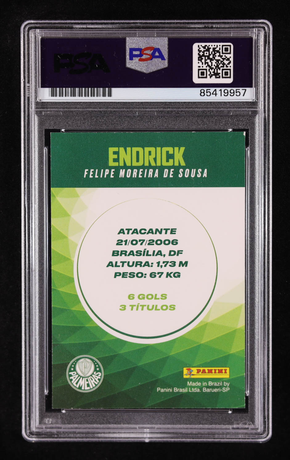 Endrick Signed 2023 Panini Palmeiras Tribute Cria Da Academia RC (PSA Authentic)