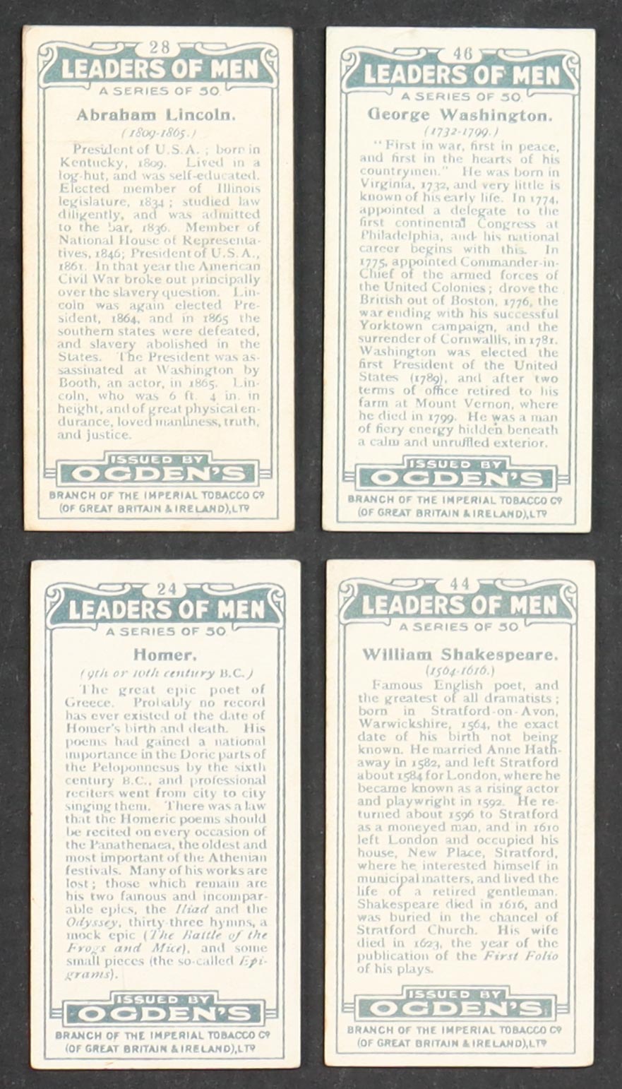 1924 Ogden's Cigarettes Leaders of Men Complete Trading Card Set With (50) Cards