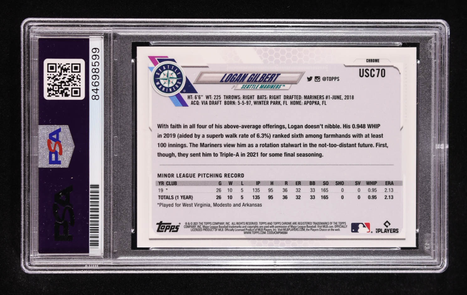 Logan Gilbert Signed 2021 Topps Chrome Update #USC70 RC (PSA Authentic)