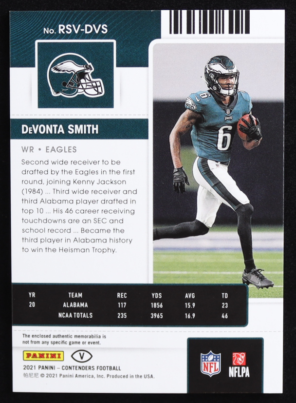 DeVonta Smith 2021 Panini Contenders Rookie Ticket Swatches #7 RC