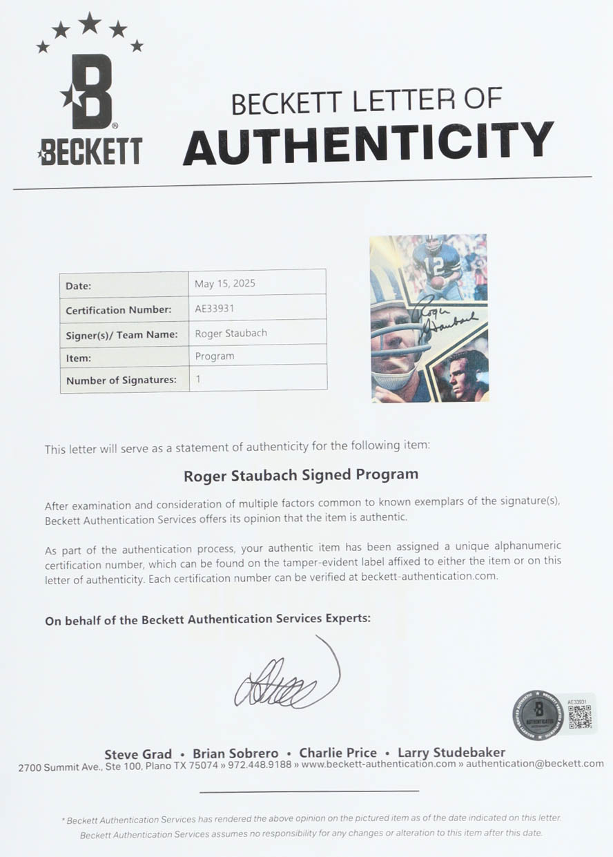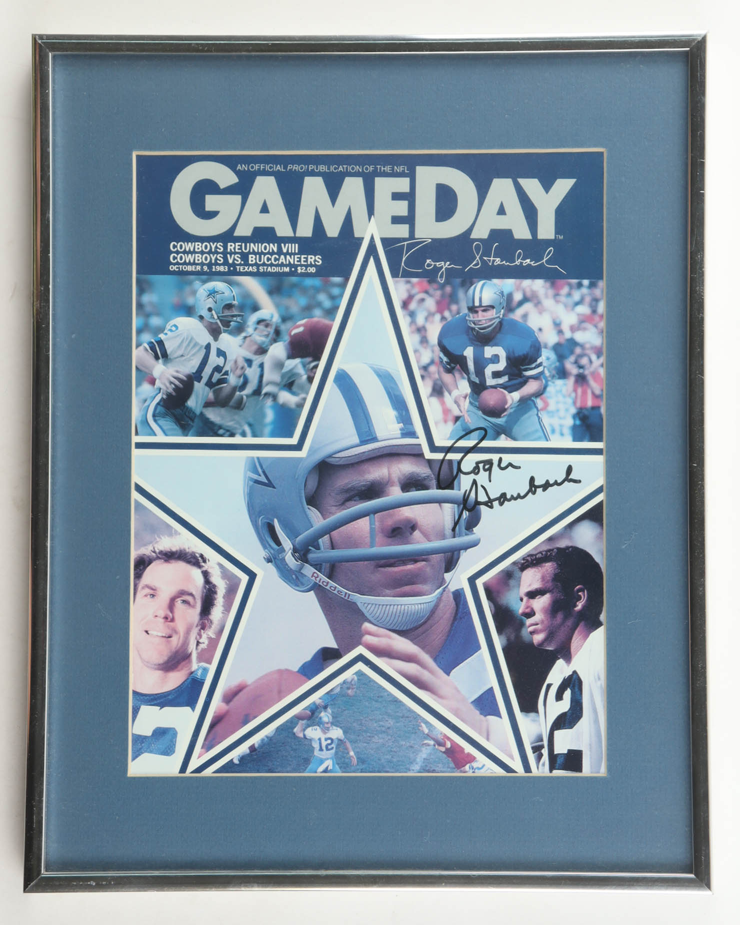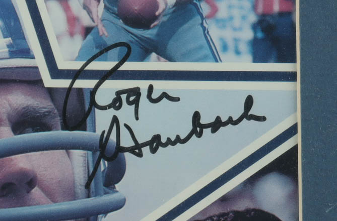 Custom frame measures approximately 11.5" x 14.5" in size and features a photo of that has been hand-signed Roger Staubach (Dallas Cowboys, HOF).