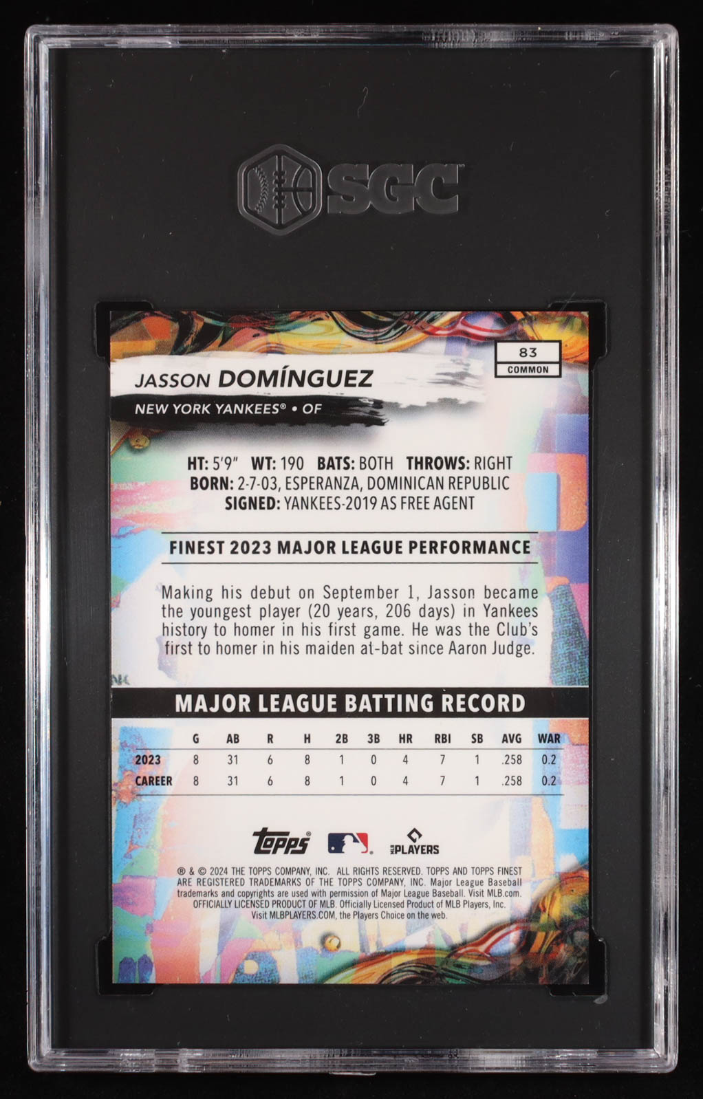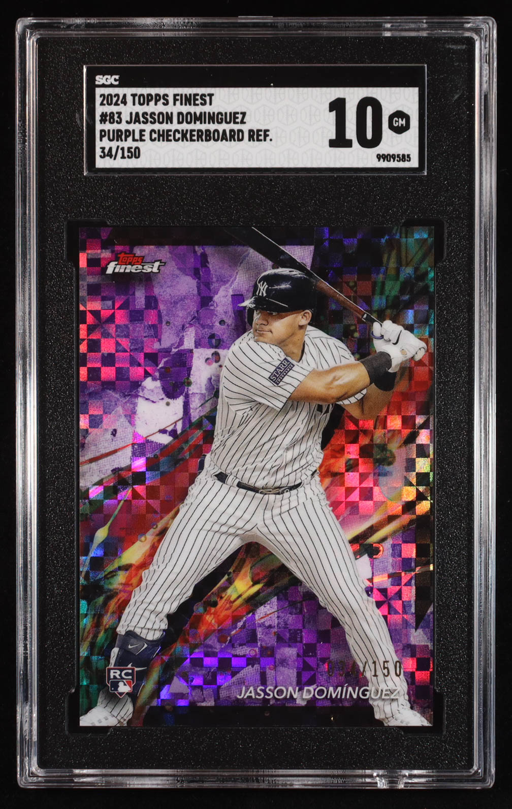 Jasson Dominguez 2024 Finest Purple Checkerboard Refractors #83 RC #34/150 (SGC 10)