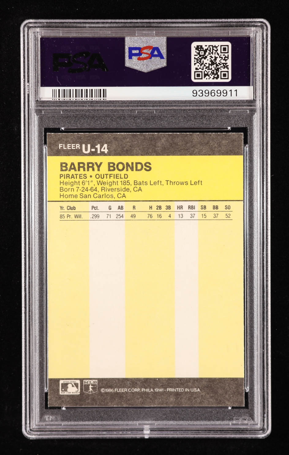 Barry Bonds 1986 Fleer Update #U14 RC (PSA 8)