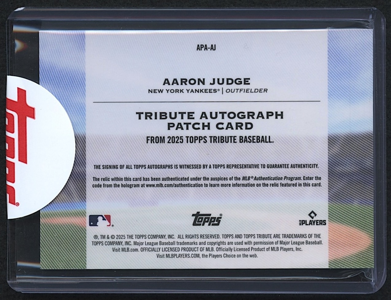 Aaron Judge 2025 Tribute Autograph Game-Used Patch #APA-AJ #10/10