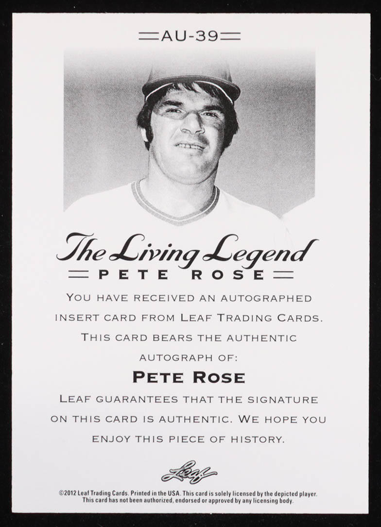 Pete Rose Signed 2012 Leaf The Living Legend #AU-39