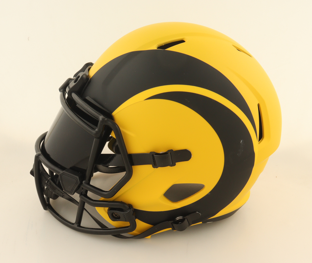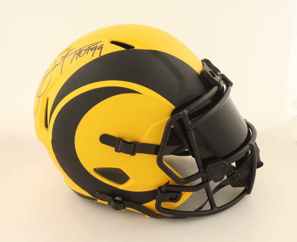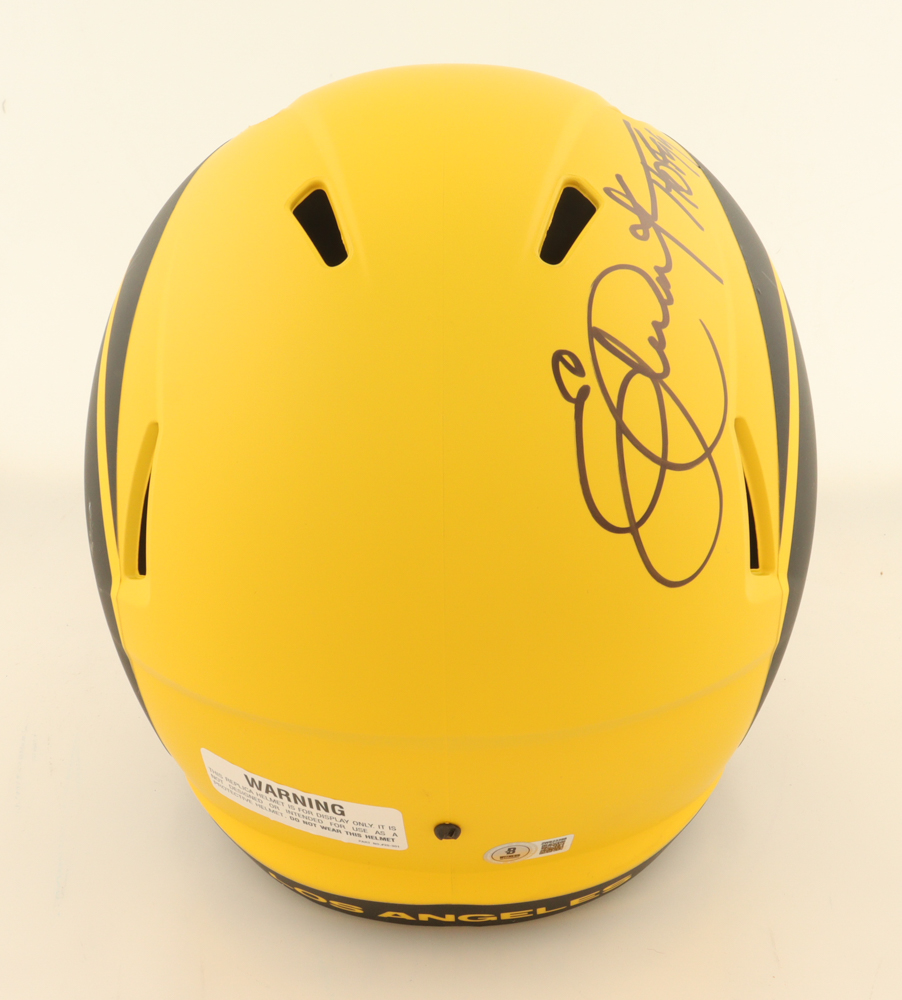 Riddell Los Angeles Rams Full-Size Replica Rave Alternate speed helmet With Visor. Hand-signed and inscribed by Eric Dickerson (HOF).