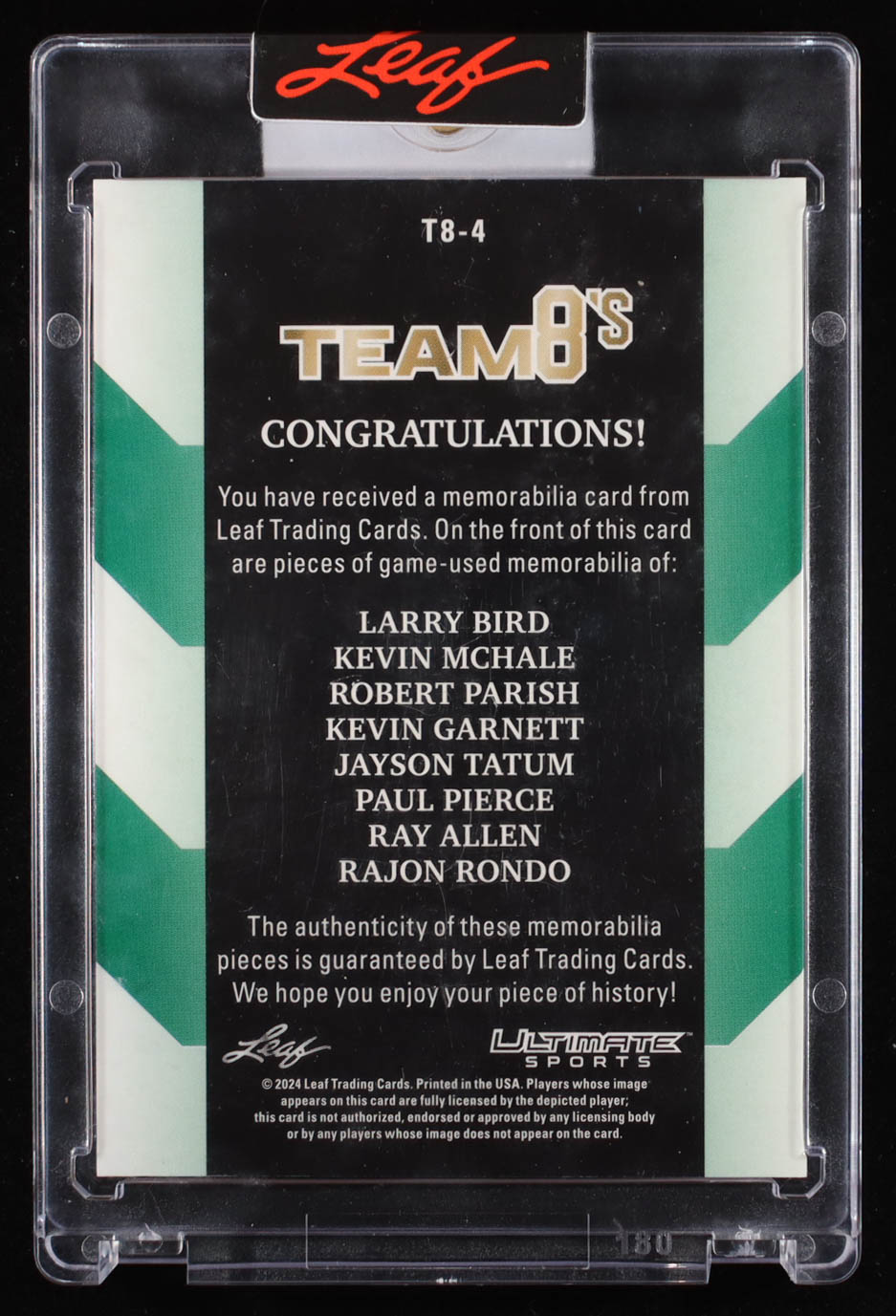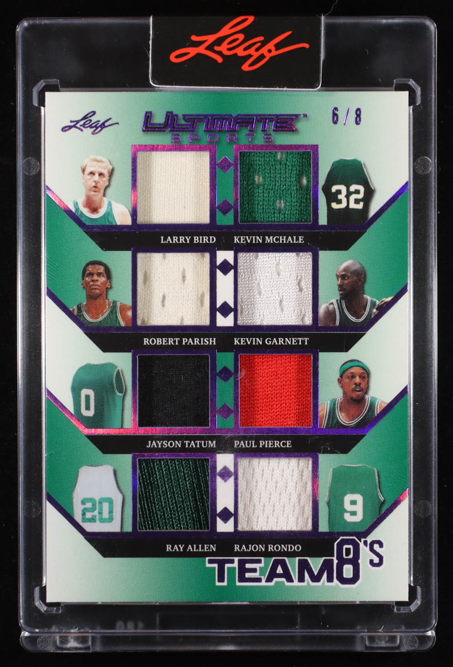 Larry Bird / Kevin McHale / Robert Parish / Kevin Garnett / Jayson Tatum / Paul Pierce / Ray Allen / Rajon Rondo 2024 Leaf Ultimate Sports Crazy 8's Purple #T8-4 #6/8