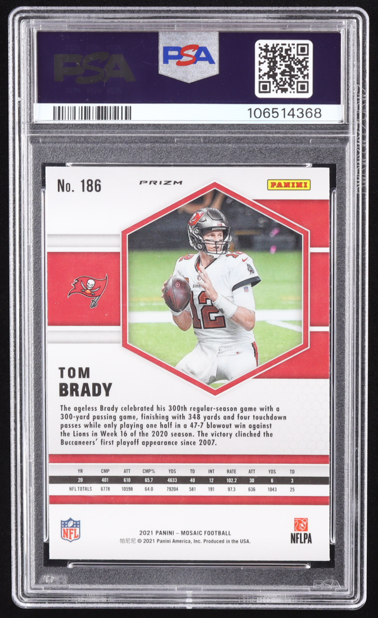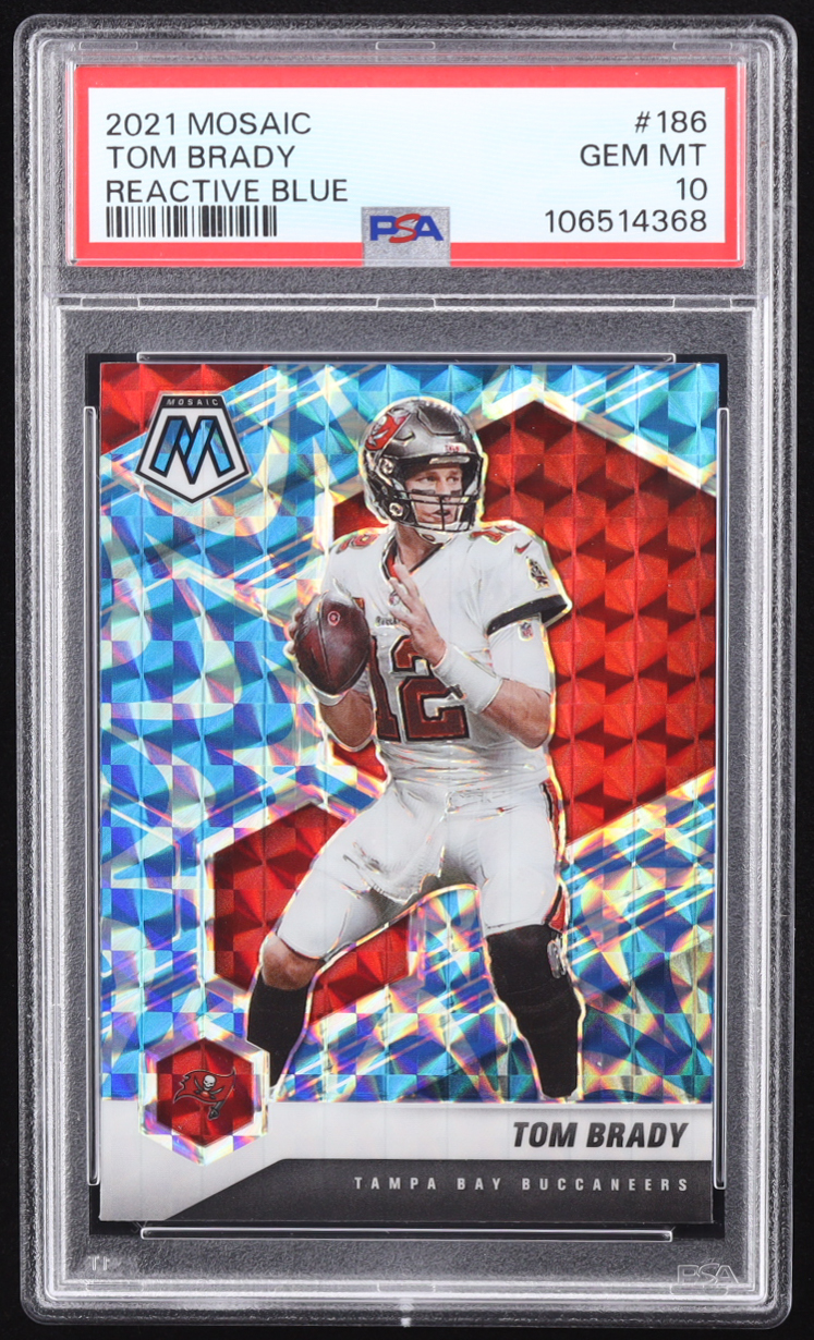 Tom Brady 2021 Panini Mosaic Mosaic Reactive Blue #186 (PSA 10)