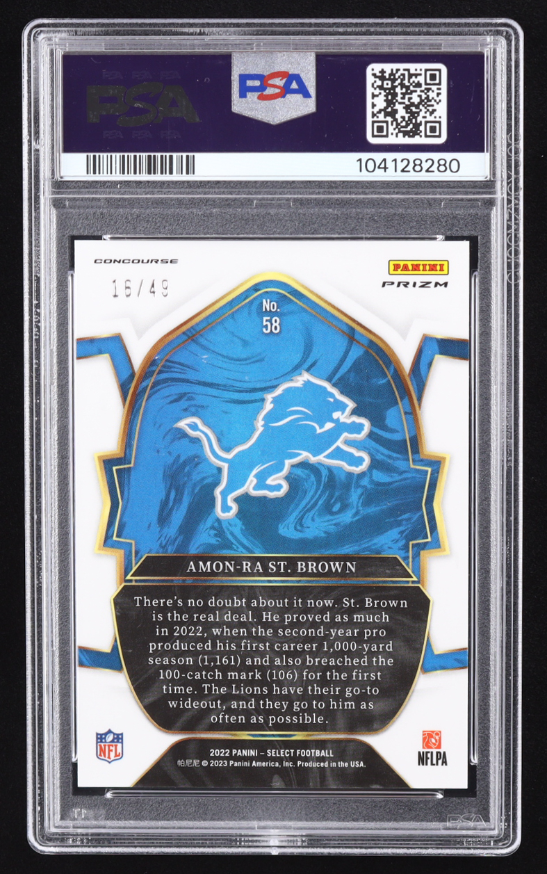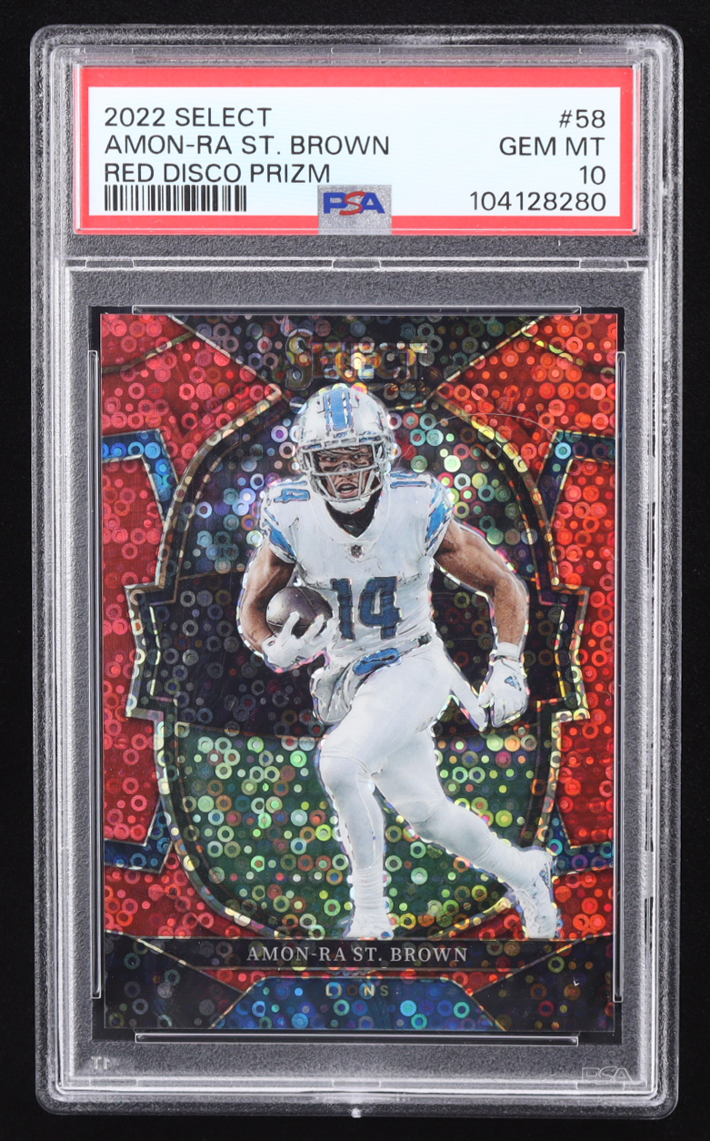 Amon-Ra St. Brown 2022 Select Prizm Red Disco #58 #16/49 (PSA 10)