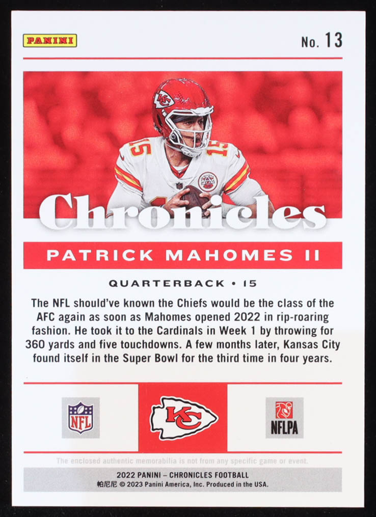 Patrick Mahomes II 2022 Panini Chronicles Jerseys Prime #13 #09/25