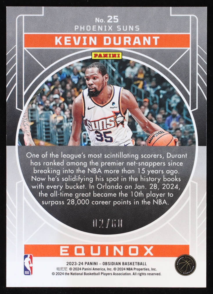 Kevin Durant 2023-24 Panini Obsidian Equinox Electric Etch Reggae Flood #25 #02/60