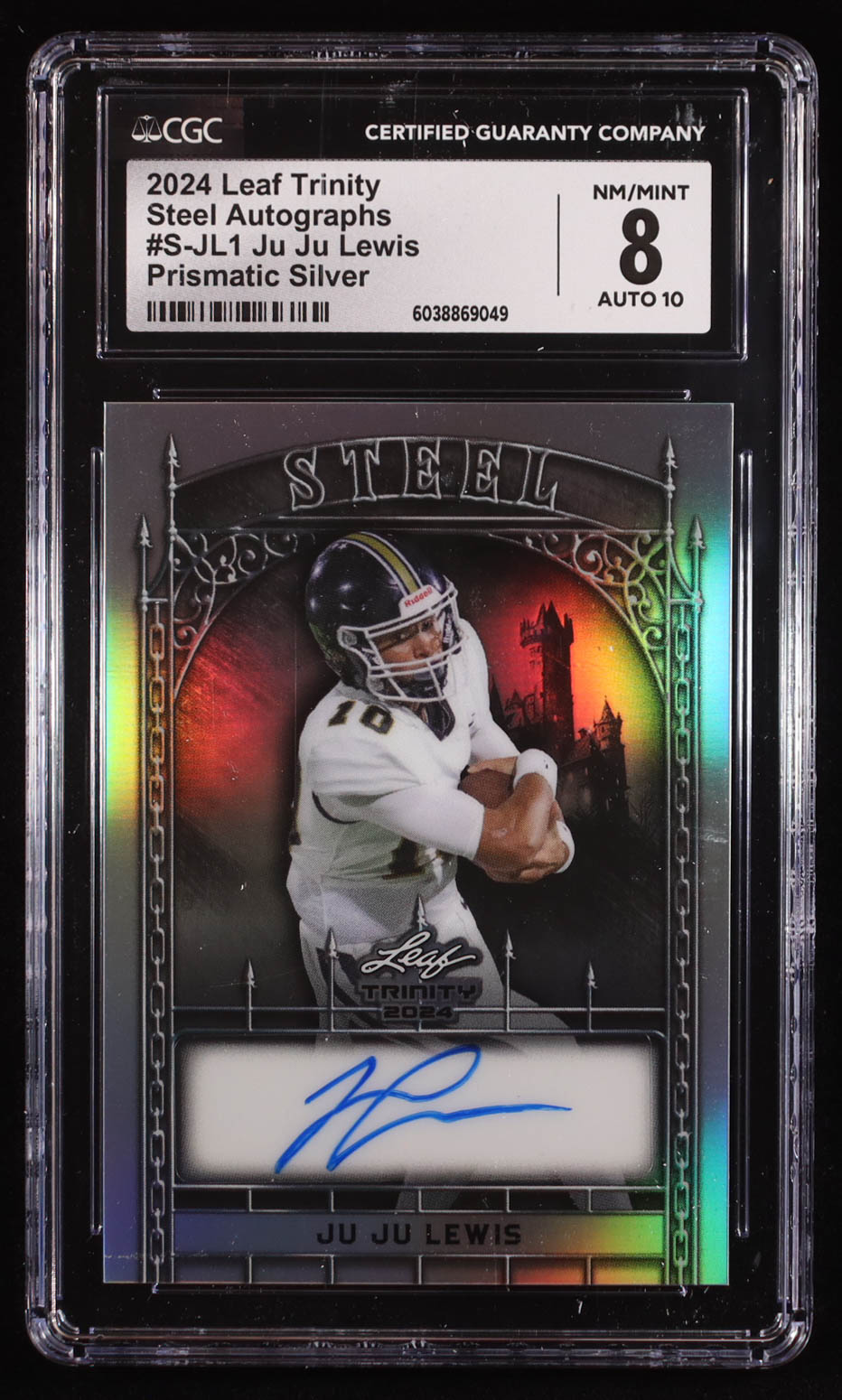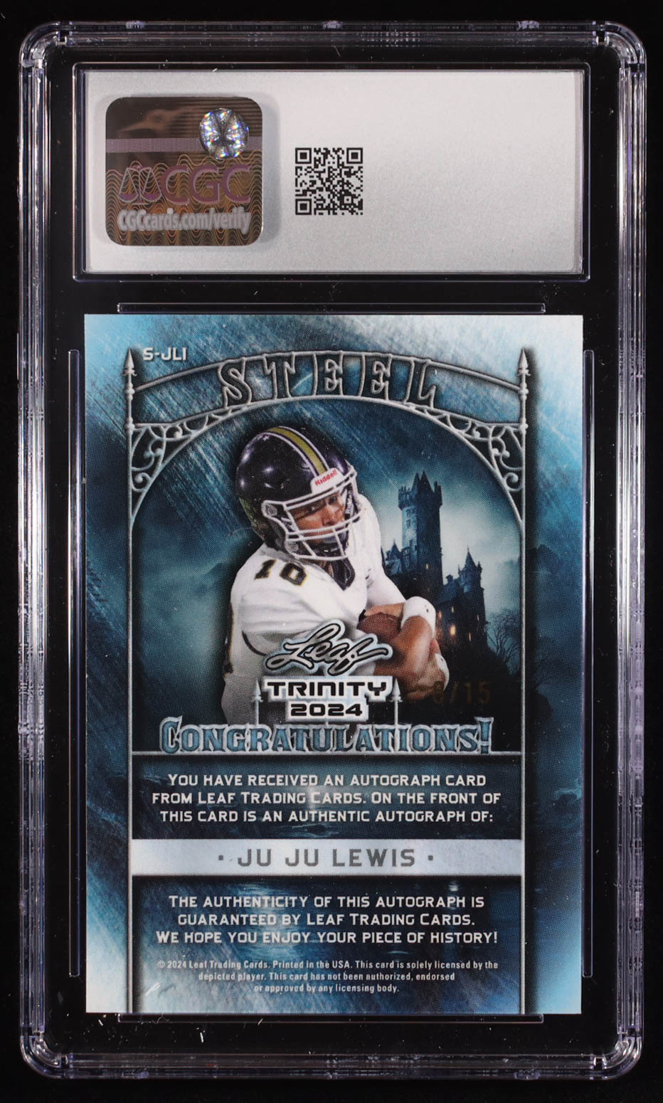 JuJu Lewis 2024 Leaf Trinity Steel Autographs Prismatic Silver #SJL1 RC #8/15 (CGC 8 | Autograph Graded CGC 10)