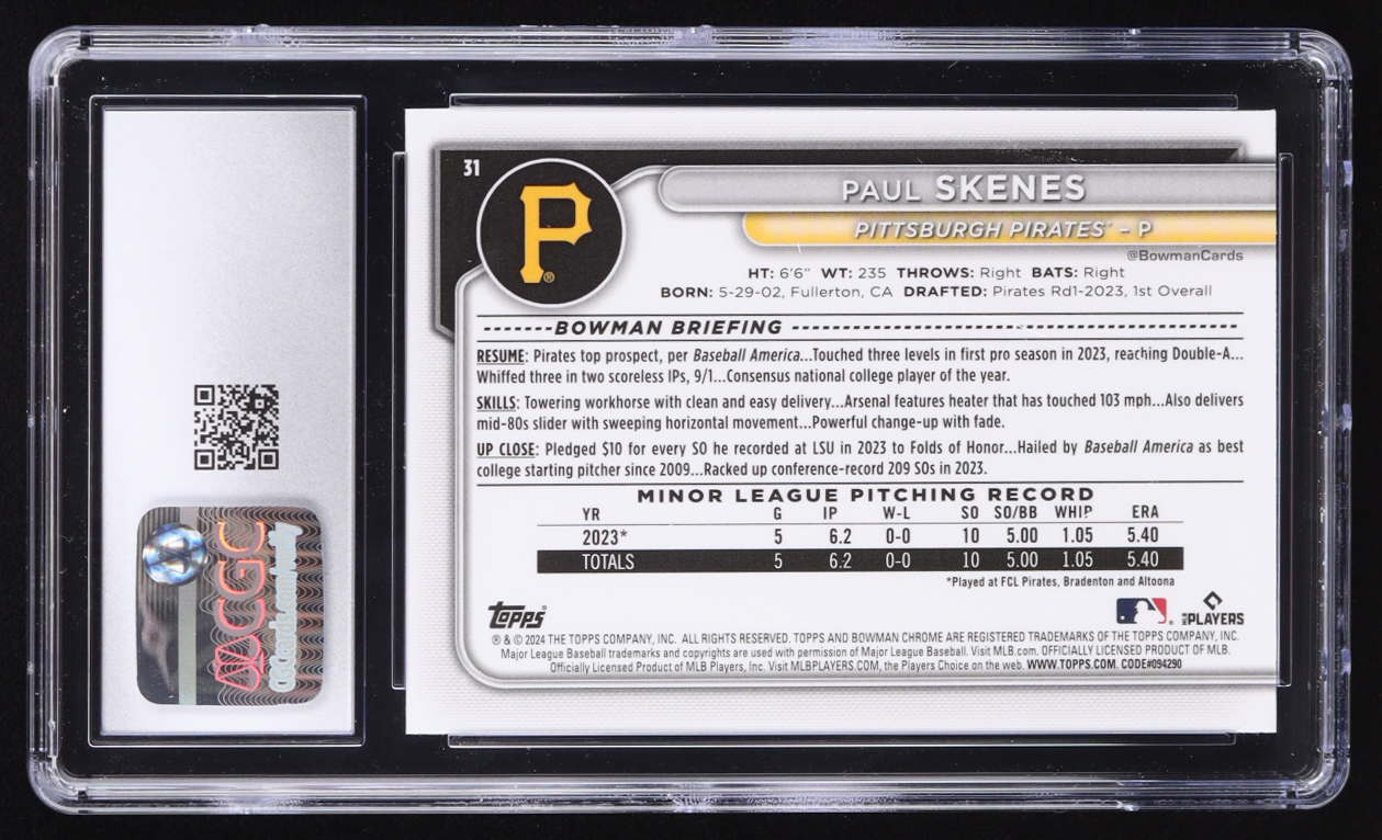 Paul Skenes 2024 Bowman Chrome Mega Box #31 RC (CGC 10)