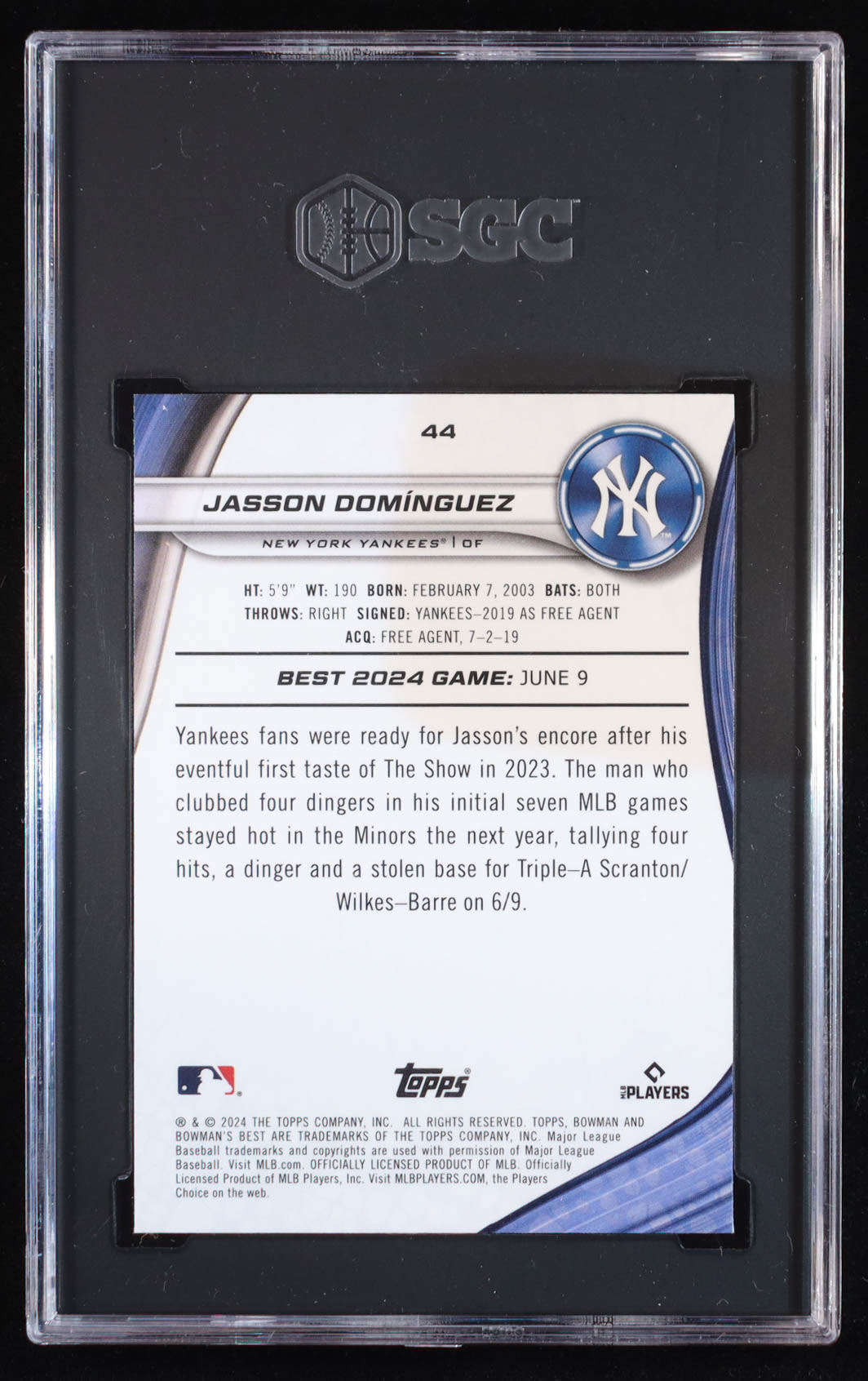 Jasson Dominguez 2024 Bowman's Best Purple Mojo Refractors #44 #108/250 RC (SGC 9.5)