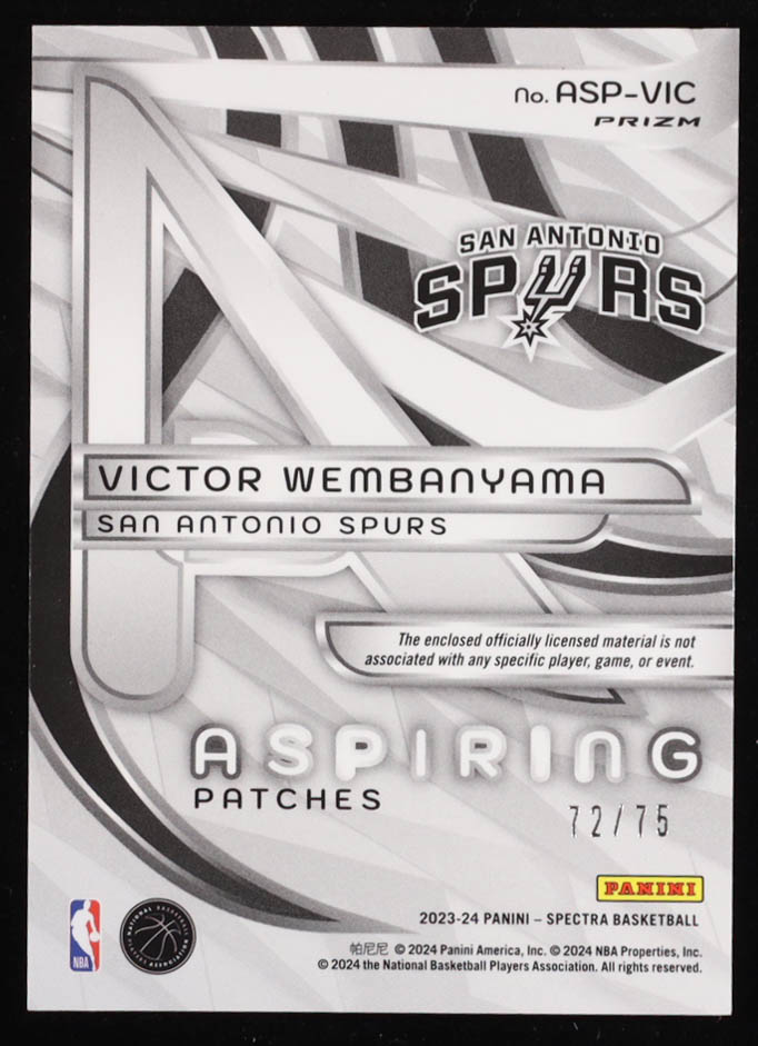 Victor Wembanyama 2023-24 Panini Spectra Aspiring Patches Interstellar #2 RC #72/75