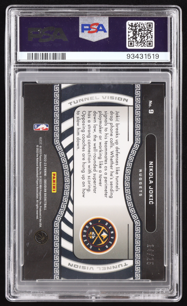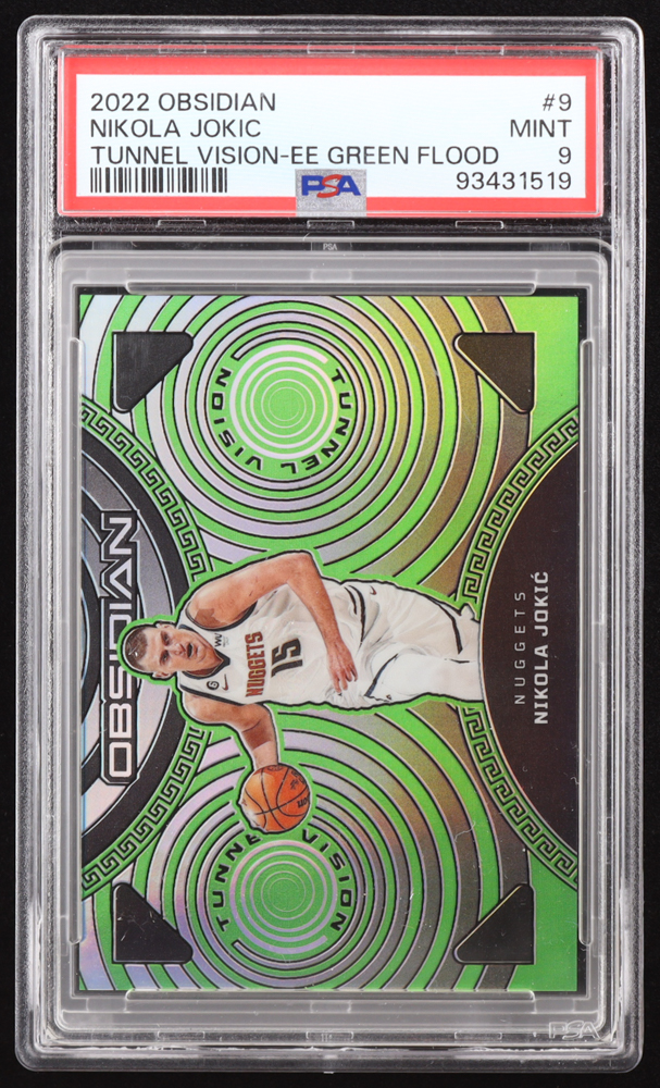 Nikola Jokic 2022-23 Panini Obsidian Tunnel Vision Electric Etch Green Flood #9 #14/25 (PSA 9)