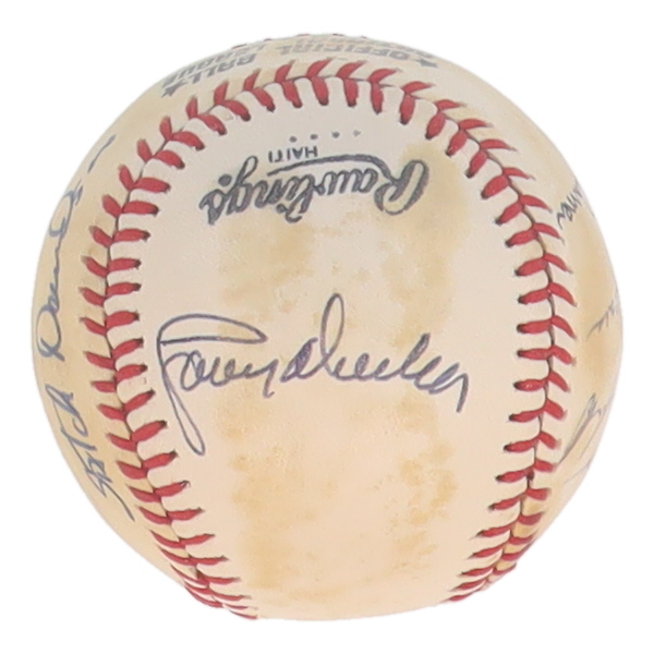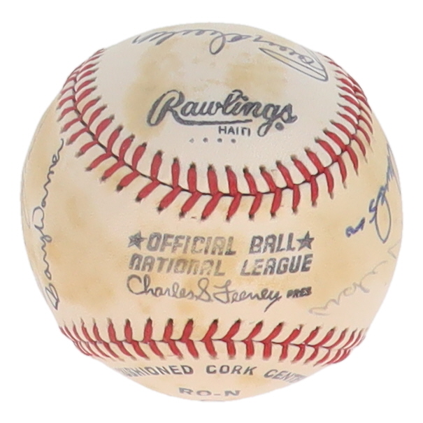 Rawlings Official National League Baseball. Hand-signed by (10) Including Dave Winfield, Phil Neikro "Deacon" Jones, Joe Sambito, Enos Cabell and (5) others. Please note ball is naturally toned, stained.