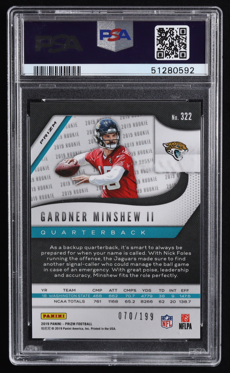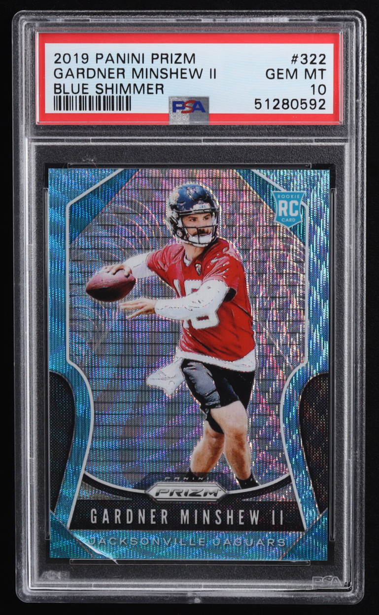 Gardner Minshew II 2019 Panini Prizm Prizms Blue Shimmer #322 RC #70/199 (PSA 10)