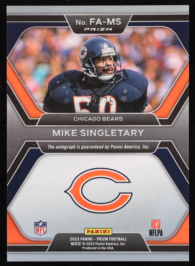 Mike Singletary 2023 Panini Prizm Flashback Autographs Prizms Green Scope #15 #72/75