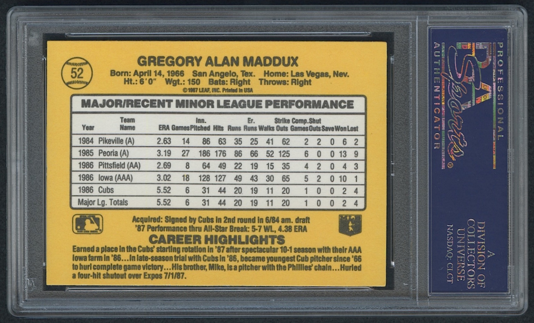 Greg Maddux Signed 1987 Donruss Rookies #52 RC (PSA Encapsulated)