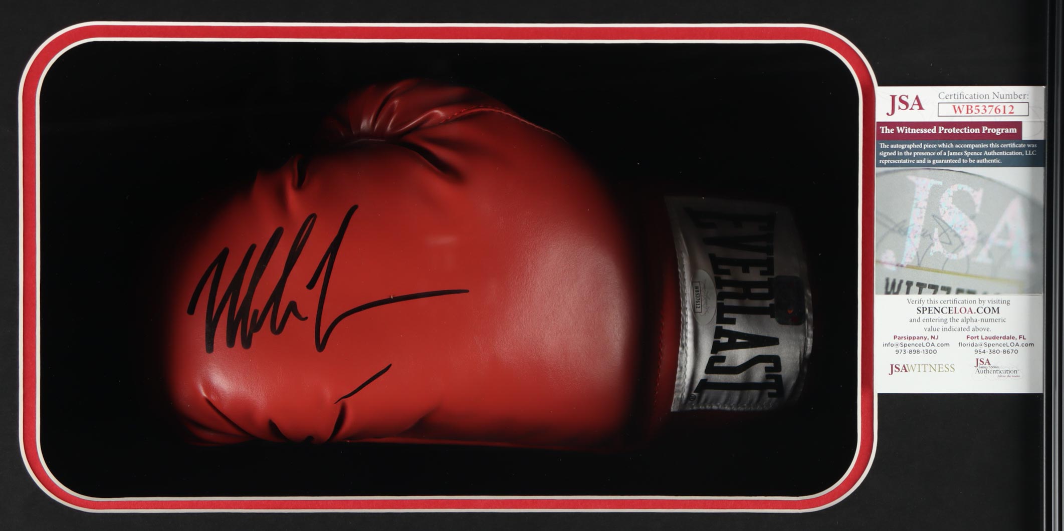 The autograph includes an official James Spence Authentication (JSA) hologram and matching COA, as well as an official Mike Tyson player hologram for authenticity purposes. The signing of this item was witnessed by JSA.