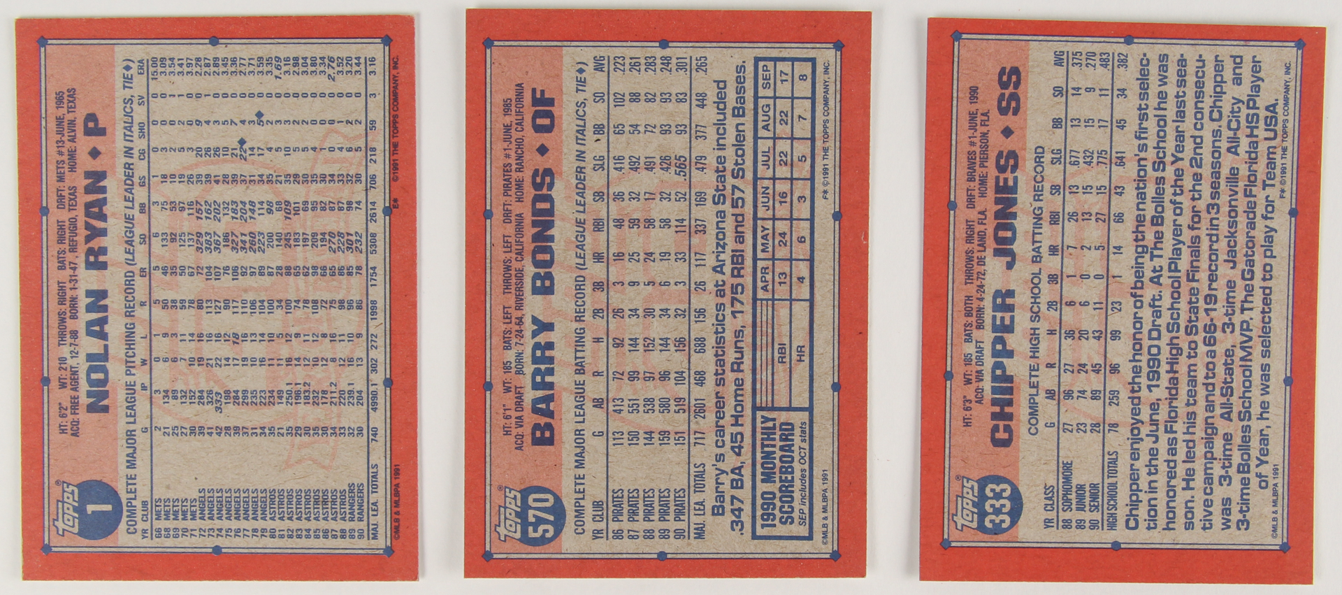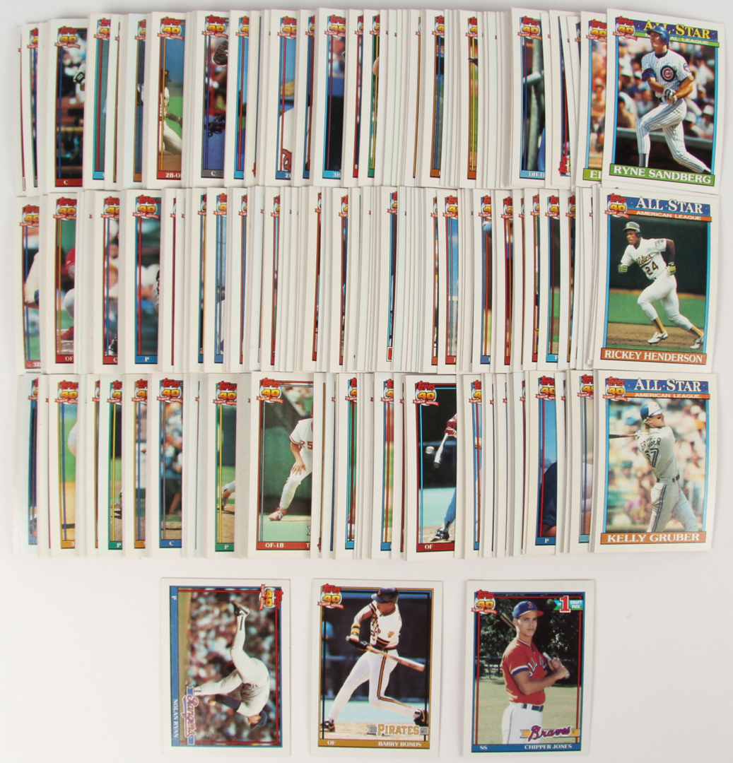 1991 Topps Complete Set of (792) Baseball Cards with #333 Chipper Jones, #570 Barry Bonds, #1 Nolan Ryan