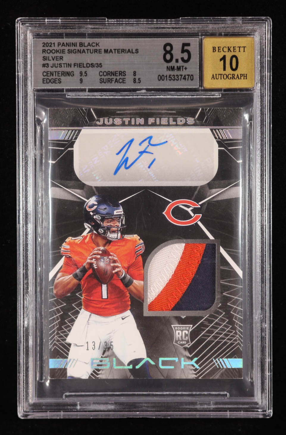 Justin Fields 2021 Panini Black Rookie Signature Materials Silver #3 RC #13/35 (BGS 8.5 | Autograph Graded 10)