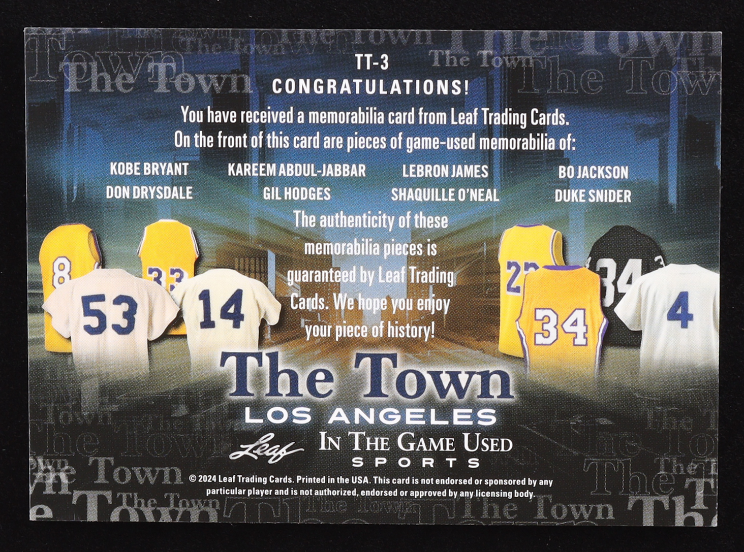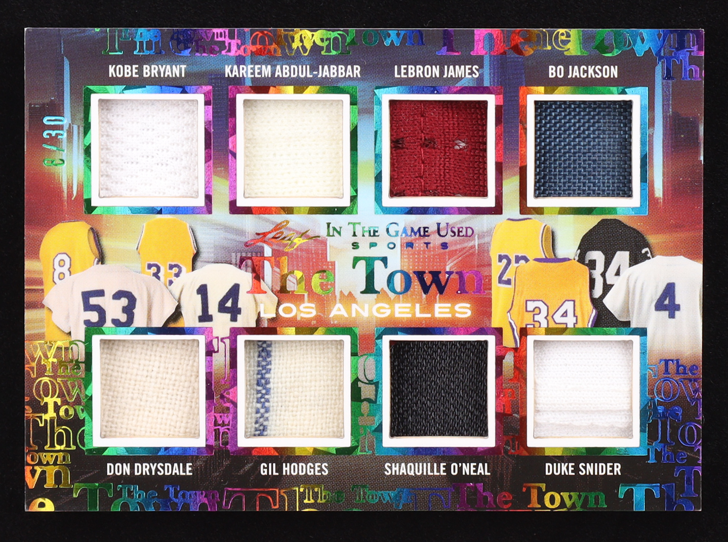 Kobe Bryant / Kareem Abdul-Jabbar / LeBron James / Bo Jackson / Don Drysdale / Gil Hodges / Shaquille O'Neal / Duke Snider 2024 ITG Used Sports The Town Memorabilia Rainbow Cracked Ice #TT3 #8/30
