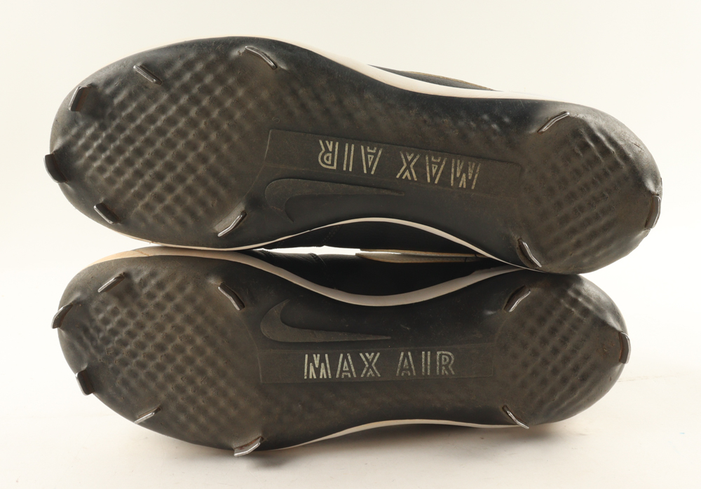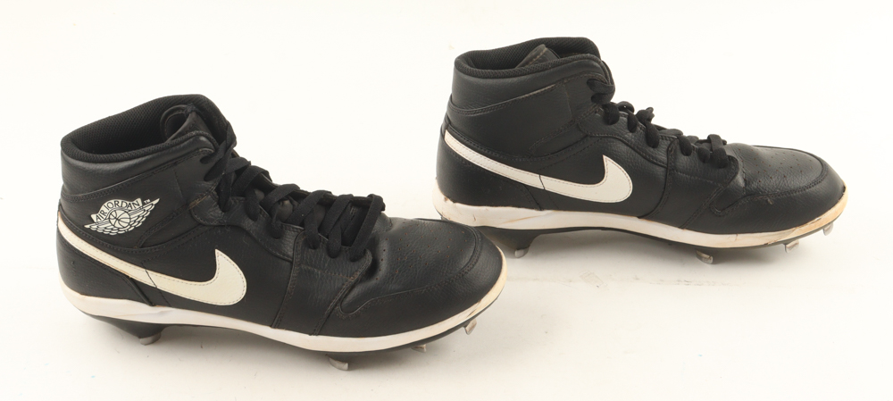 Pair of (2) Nike Air Jordan Cleats. Left cleat is hand-signed by Nolan Ryan (Texas Rangers, HOF).