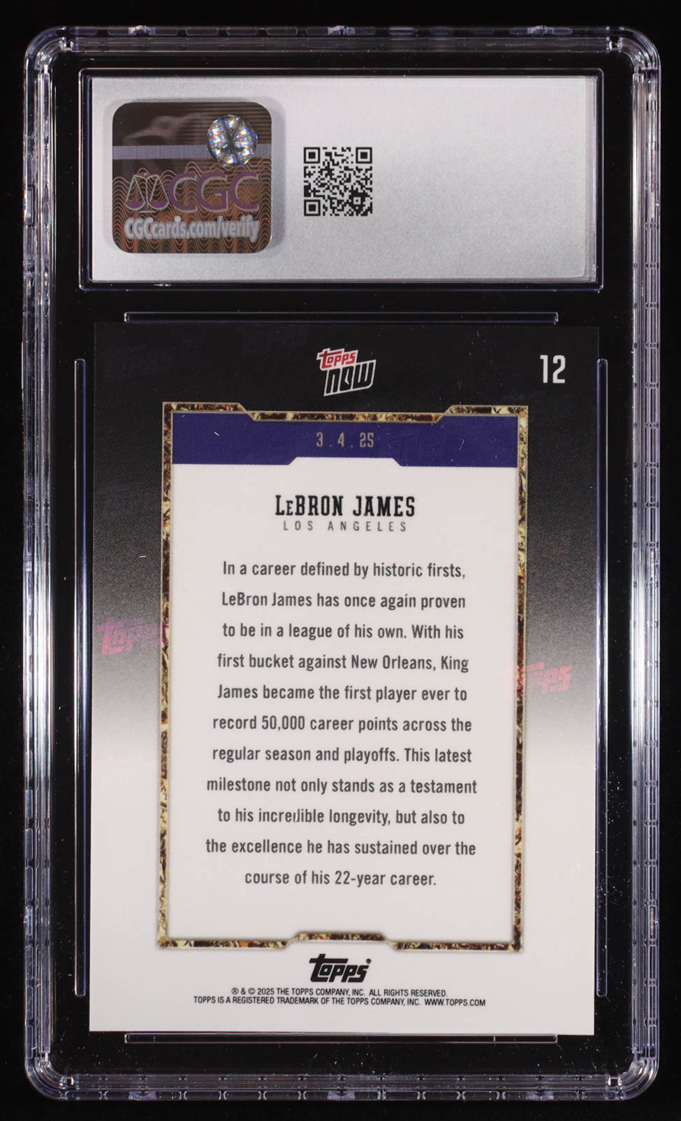 LeBron James 2025 Topps Now 50K Career Points #12 (CGC 10)