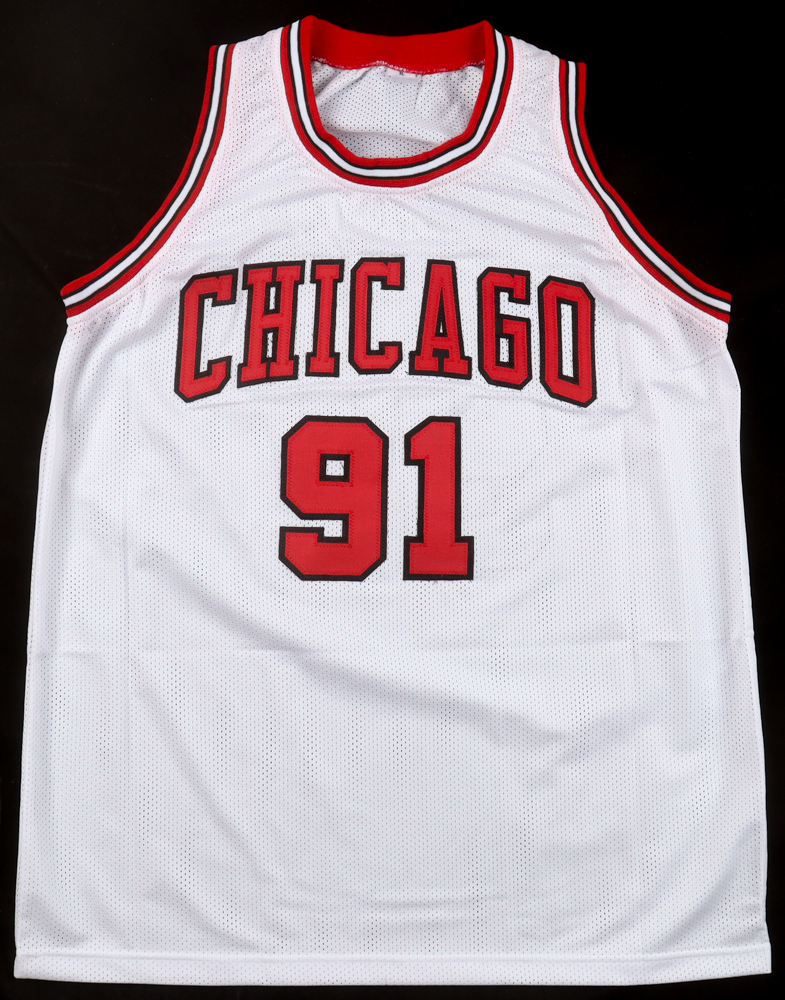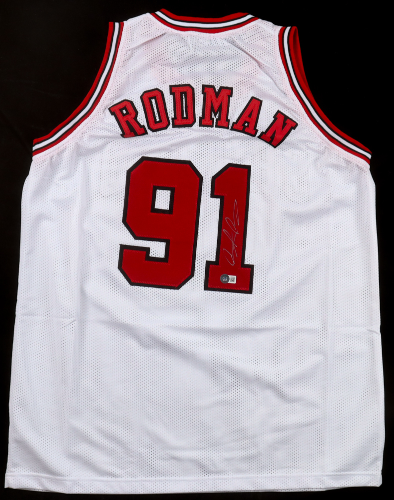 Custom jersey with everything sewn on, size XL. Has been hand-signed by Dennis Rodman (HOF).