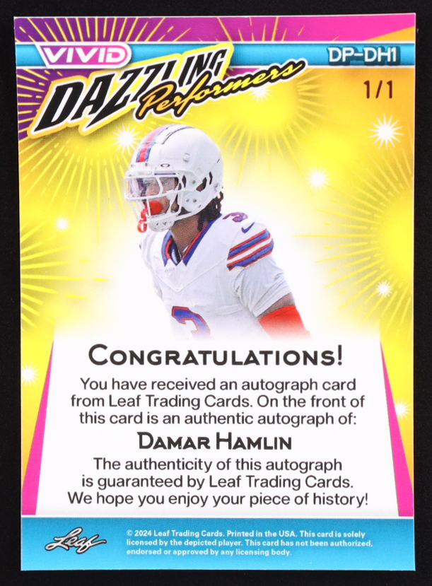 Damar Hamlin Signed 2024 Leaf Vivid Dazzling Performer Rainbow Prismatic #DP-DH1 #1/1
