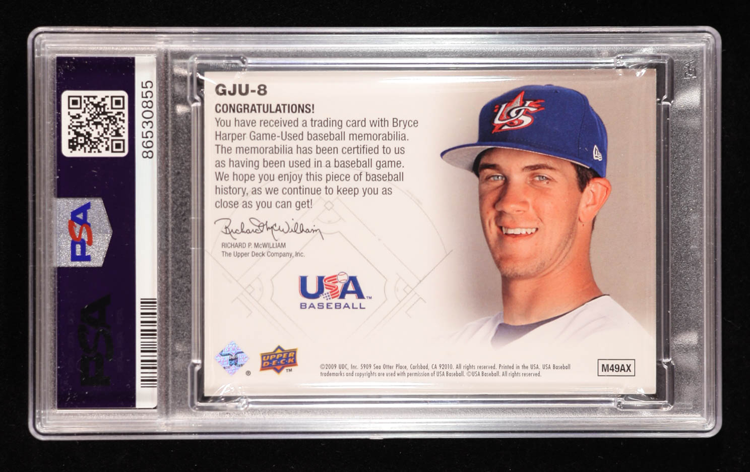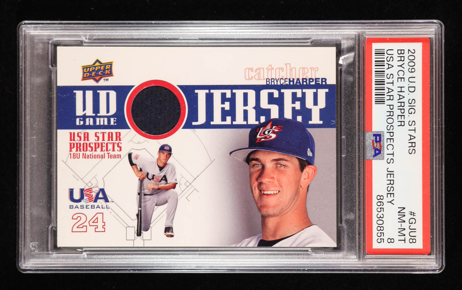 Bryce Harper 2009 Upper Deck Signature Stars USA Star Prospects Jerseys #8 RC (PSA 8)