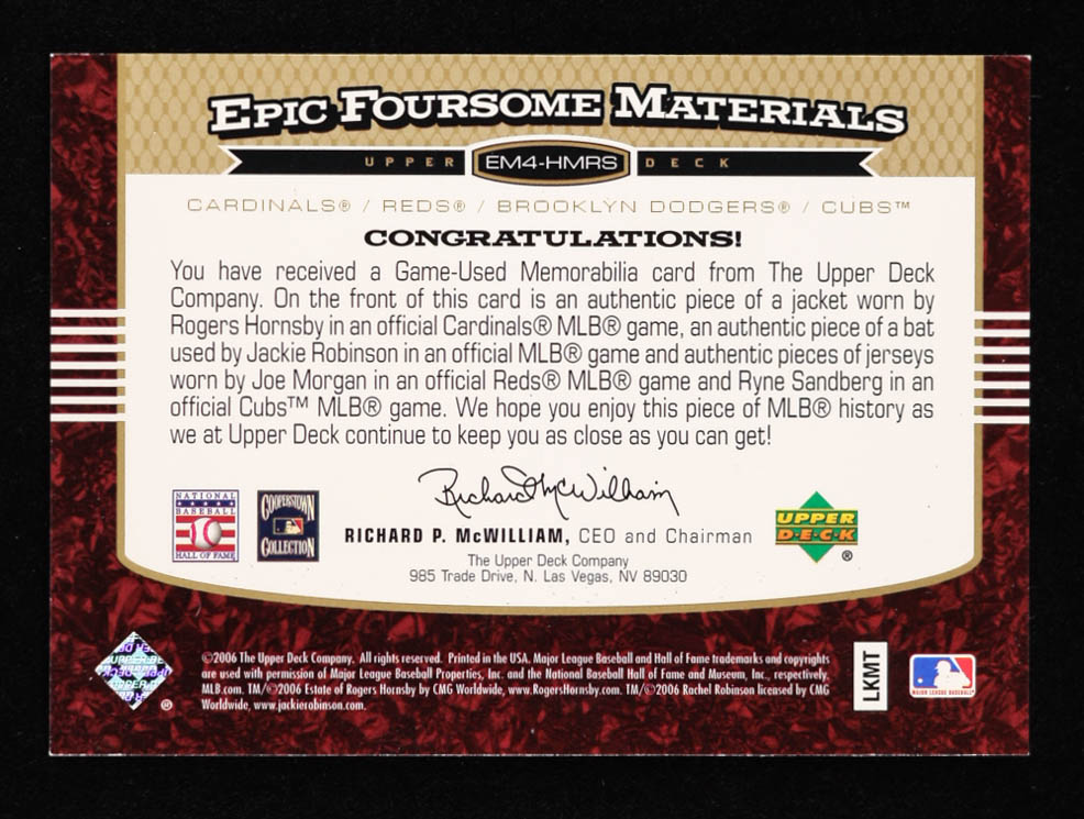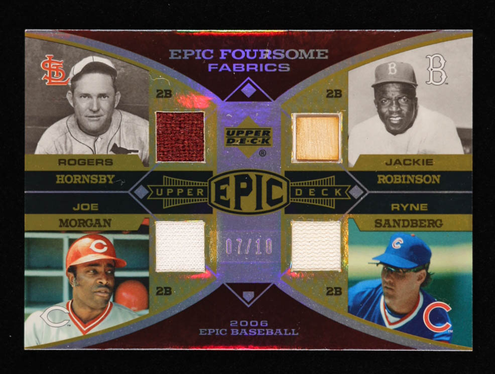 2006 Upper Deck Epic Foursome Fabrics #HMRS Rogers Hornsby / Joe Morgan / Jackie Robinson / Ryne Sandberg #07/10