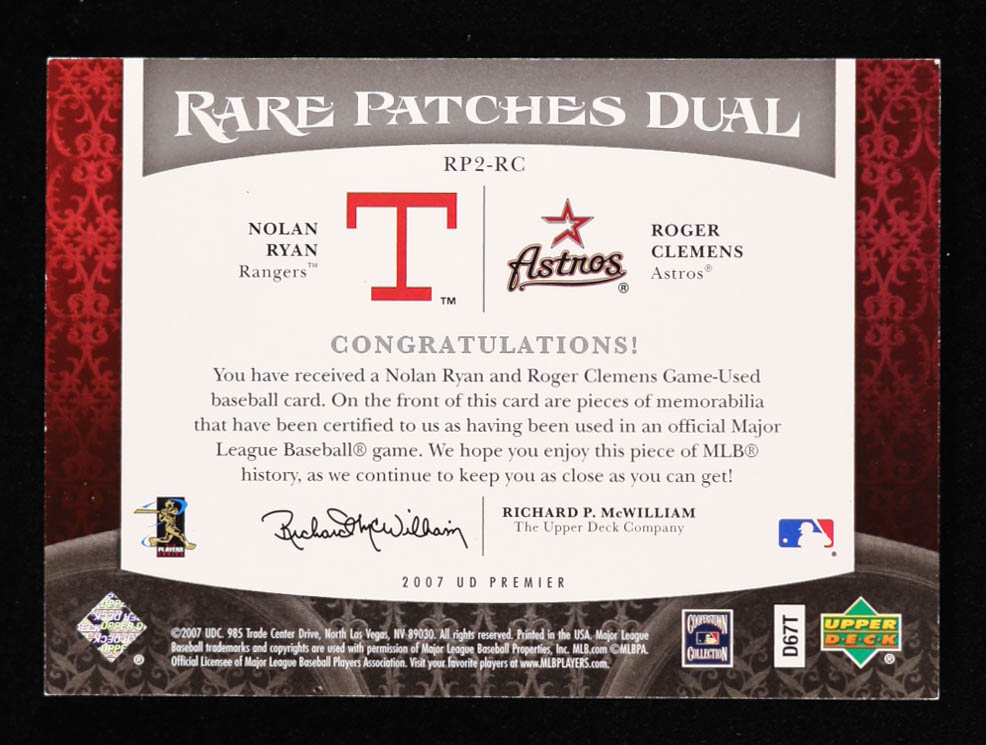 Nolan Ryan / Roger Clemens 2007 Upper Deck Premier Rare Patches Dual #RC #37/50