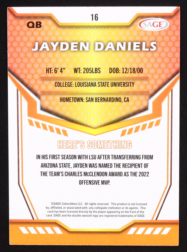 Jayden Daniels 2024 SAGE HIT #16 RC
