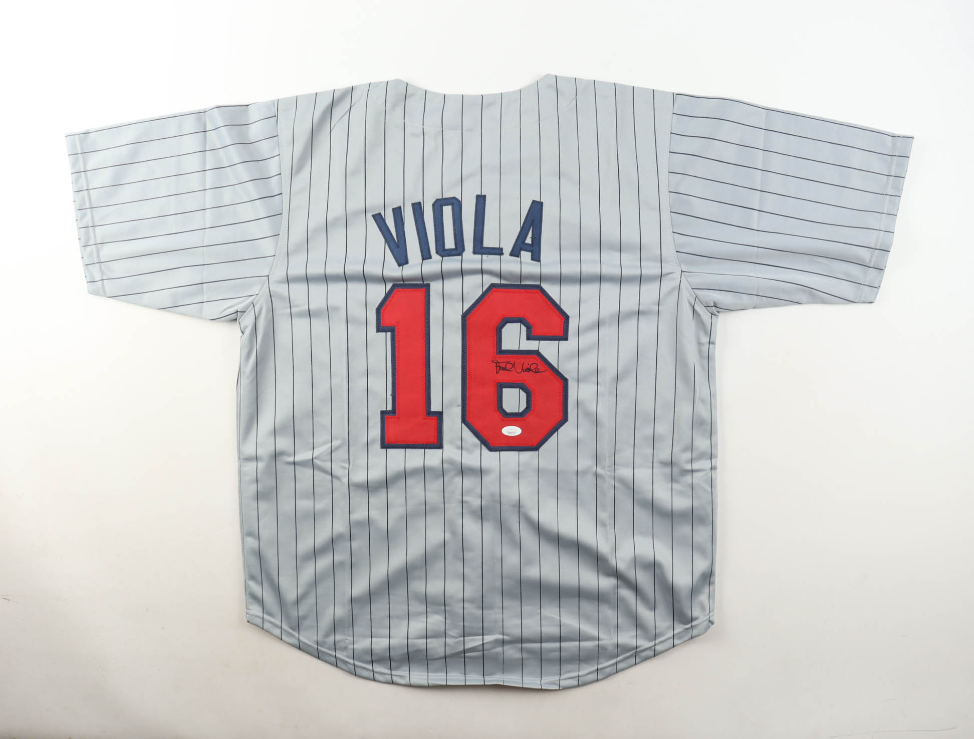 Custom jersey with everything sewn on, size XL. Hand-signed by Frank Viola.
