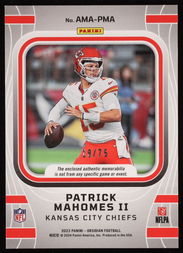 Patrick Mahomes II 2023 Panini Obsidian Atomic Materials Electric Etch Purple #15 #18/75