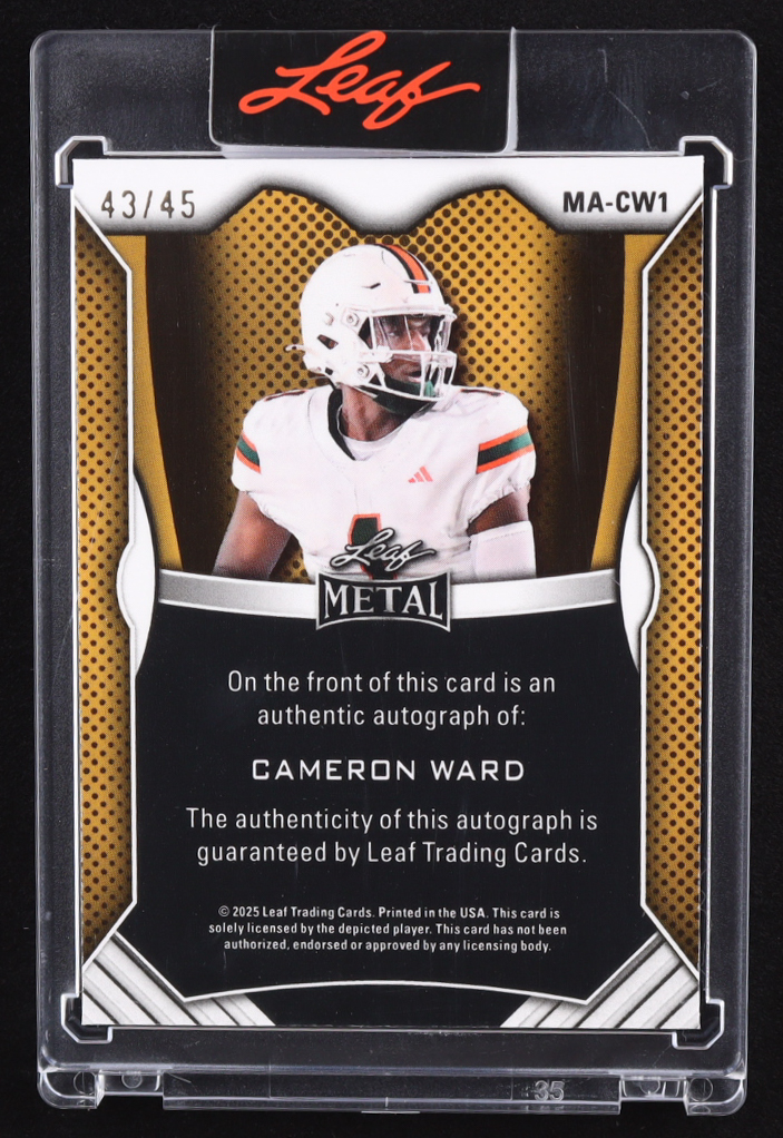 Cam Ward 2025 Leaf Metal Autograph Orange #MACW1 RC #43/45