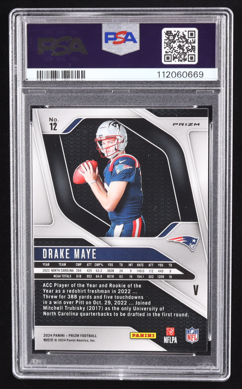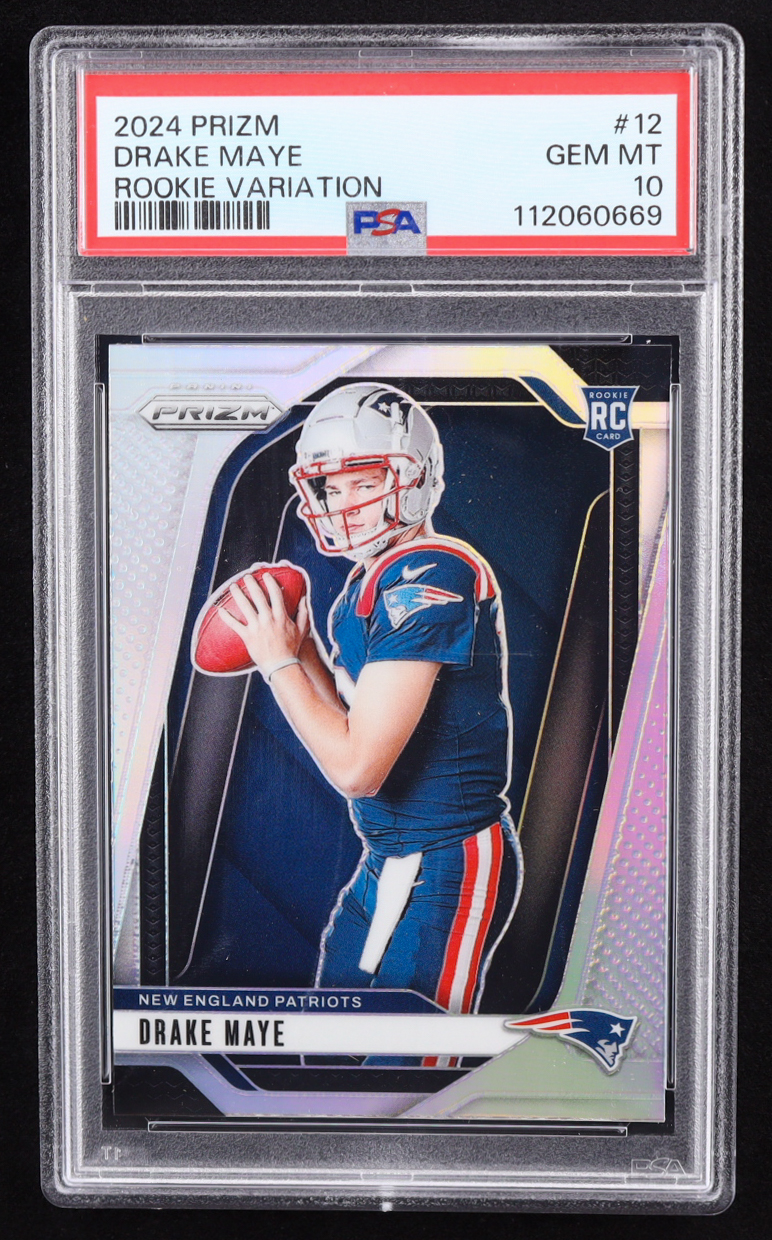 Drake Maye 2024 Panini Prizm Rookie Variations Prizms Silver #12 RC (PSA 10)