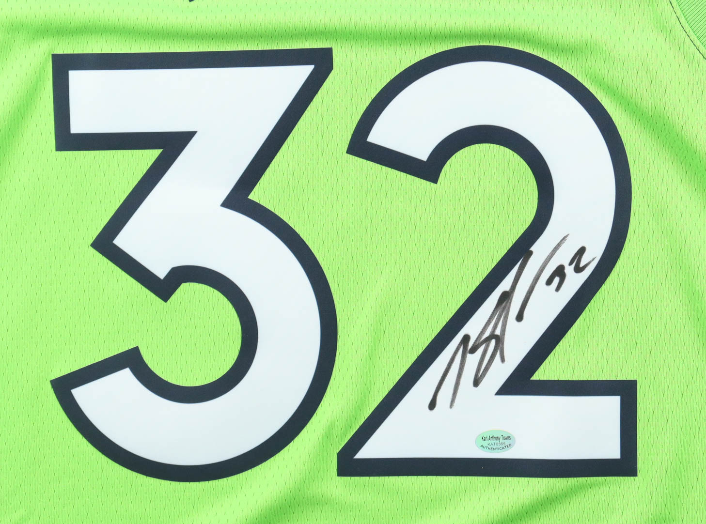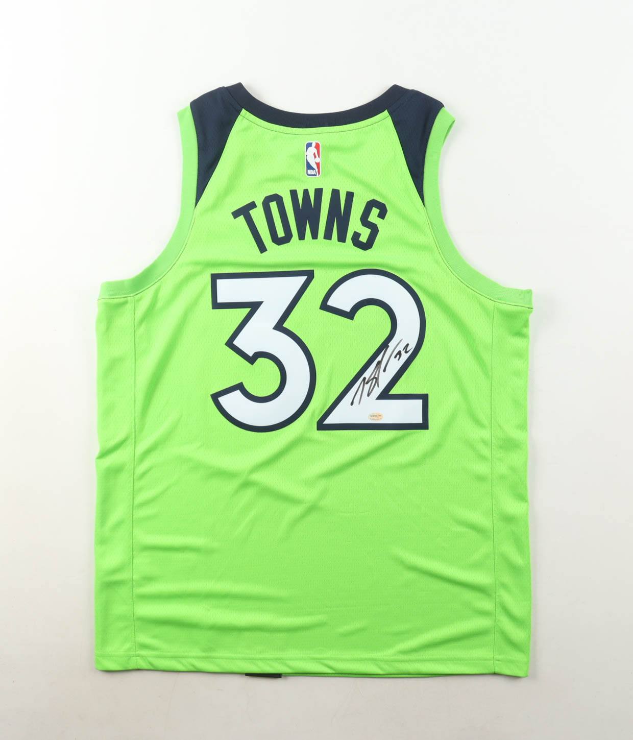 Nike jersey with everything pressed on, size L. Hand-signed by Karl-Anthony Towns.
