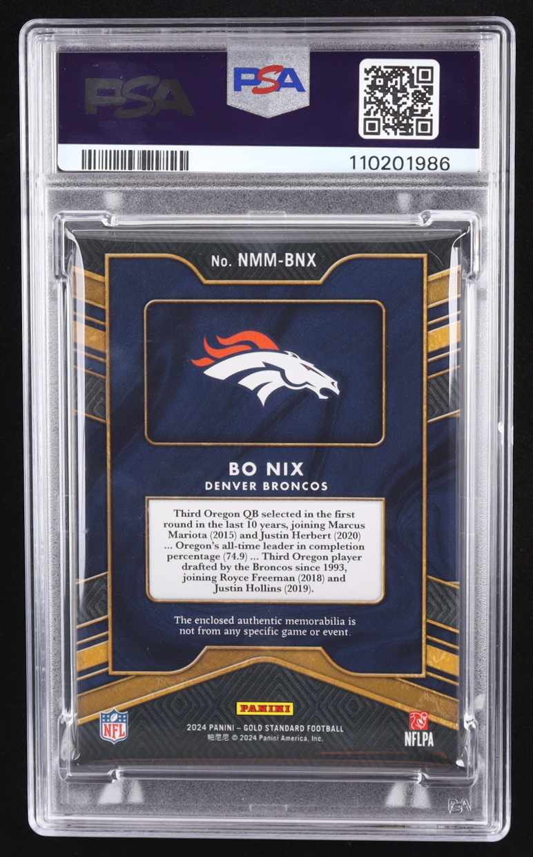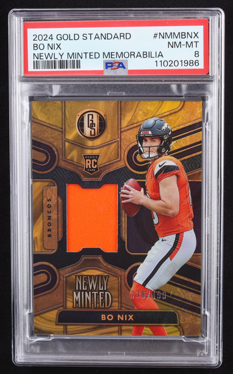 Bo Nix 2024 Panini Gold Standard Newly Minted Memorabilia #27 RC #38/499 (PSA 8)