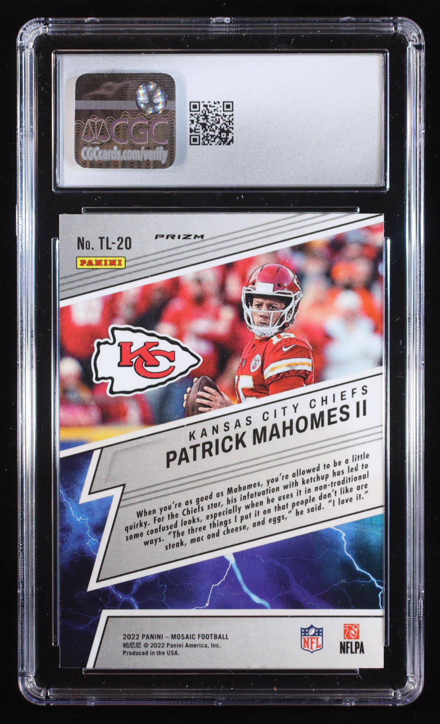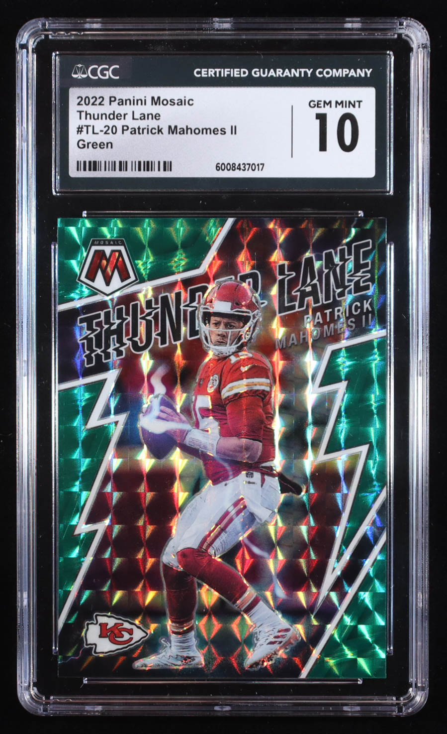 Patrick Mahomes II 2022 Panini Mosaic Thunder Lane Mosaic Green #20 (CGC 10)