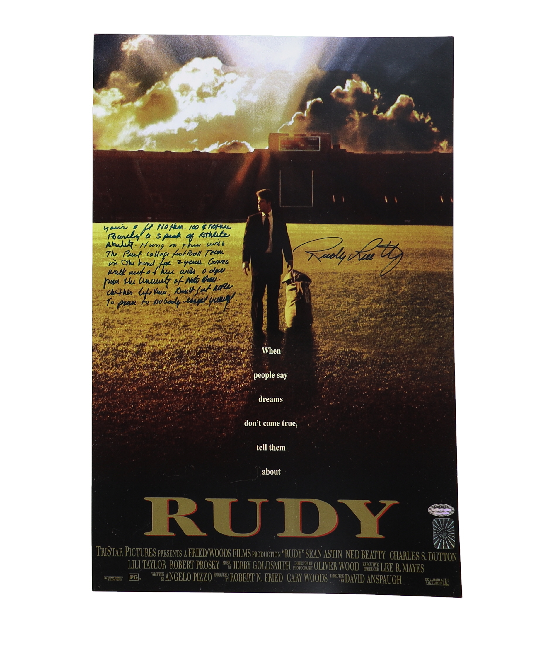 Rudy Ruettiger Signed "Rudy" 11x17 Movie Poster Photo with Quote Inscription (Schwartz & Ruettiger)