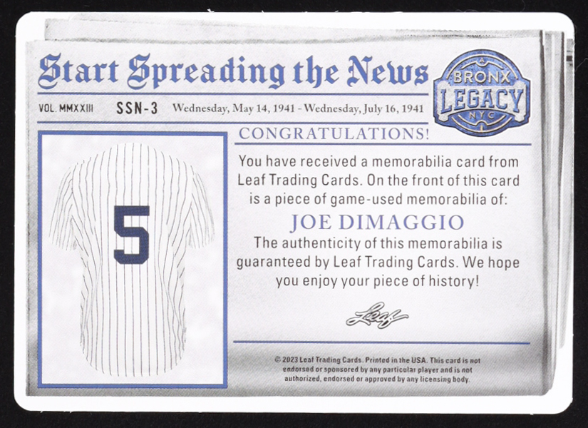 Joe Dimaggio 2023 Leaf Bronx Legacy Start Spreading The News Printing Plate Black #SSN-3 #1/1