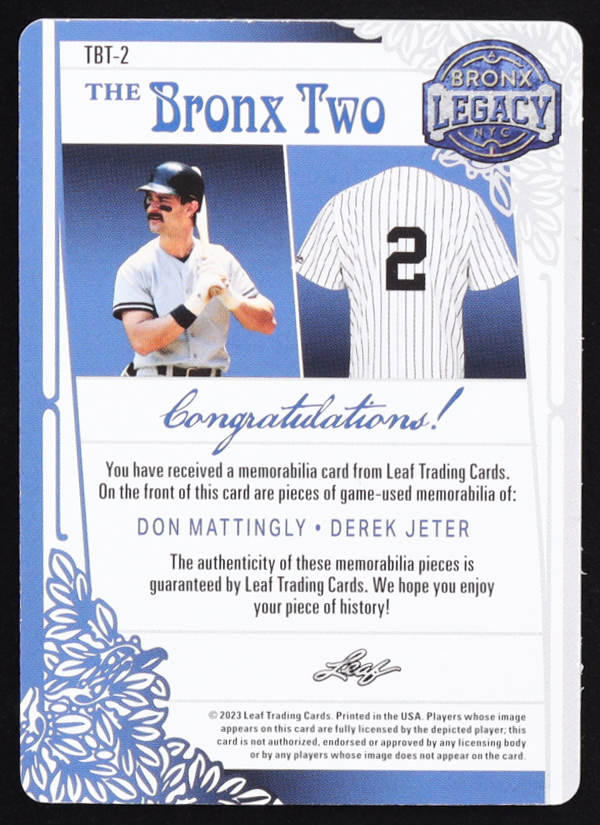 Don Mattingly / Derek Jeter 2023 Leaf Bronx Legacy Start The Bronx Two Printing Plate Cyan #TBT-2 #1/1