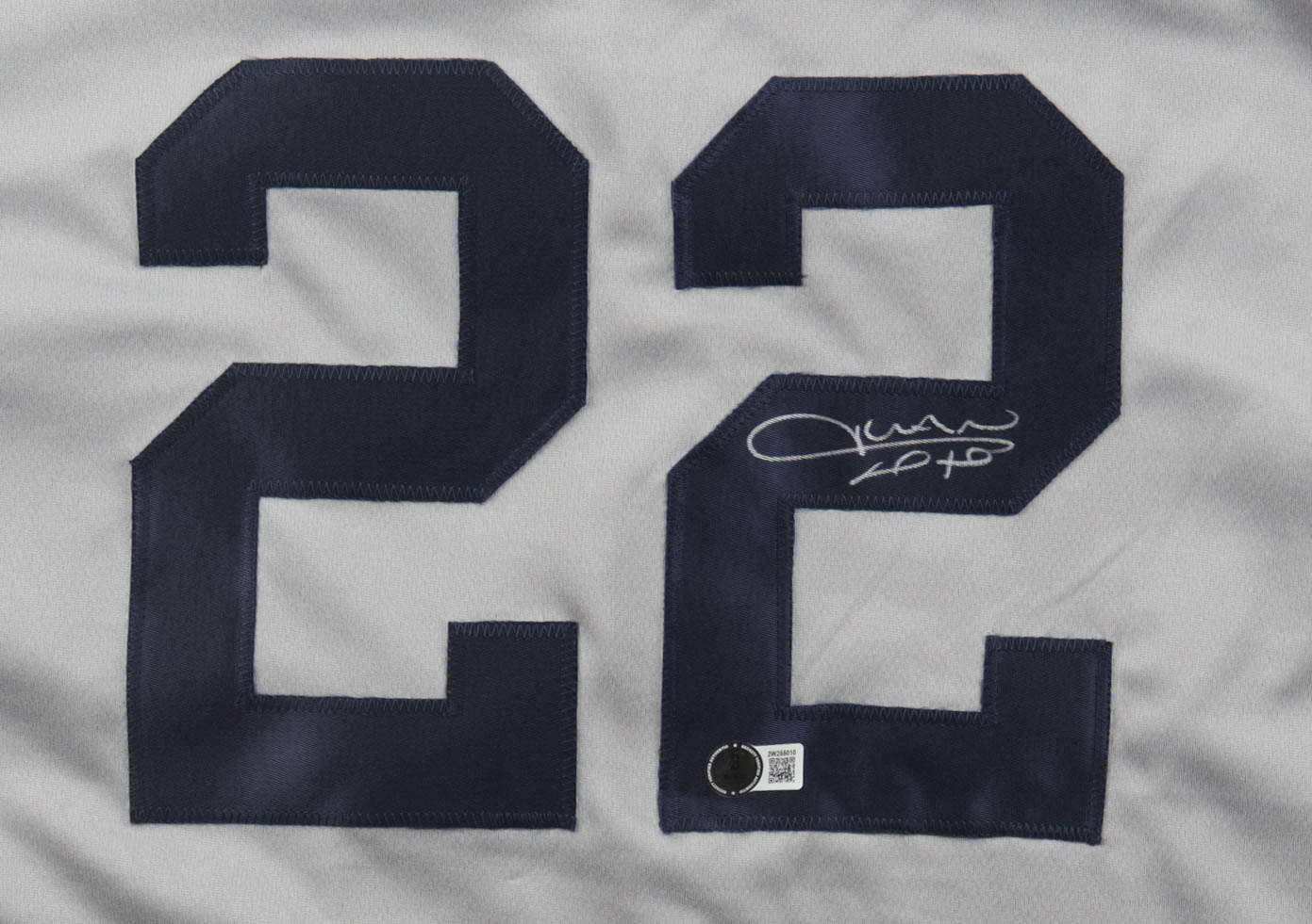 Custom jersey with everything sewn on, size XL. Hand-signed by Juan Soto.