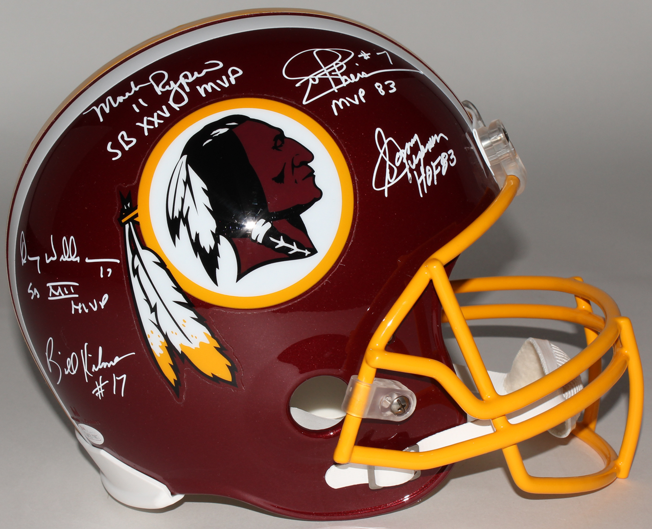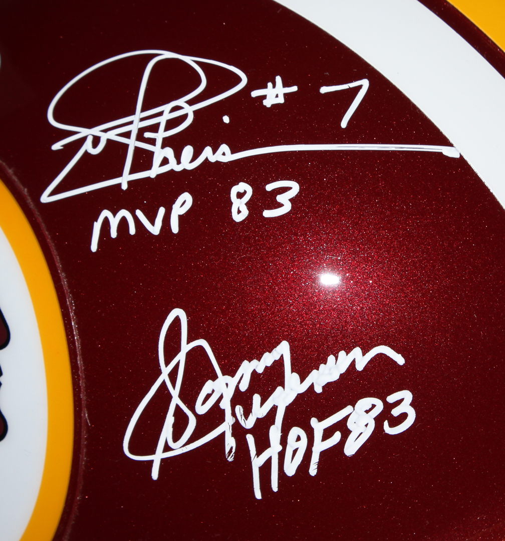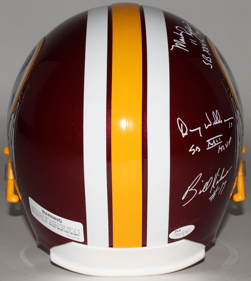 Redskins full size replica helmet. Hand-signed and inscribed in white paint pen by (5) Redskins greats including Joe Theismann, Mark Rypien, Doug Williams, Sonny Jurgensen, and Billy Kilmer.