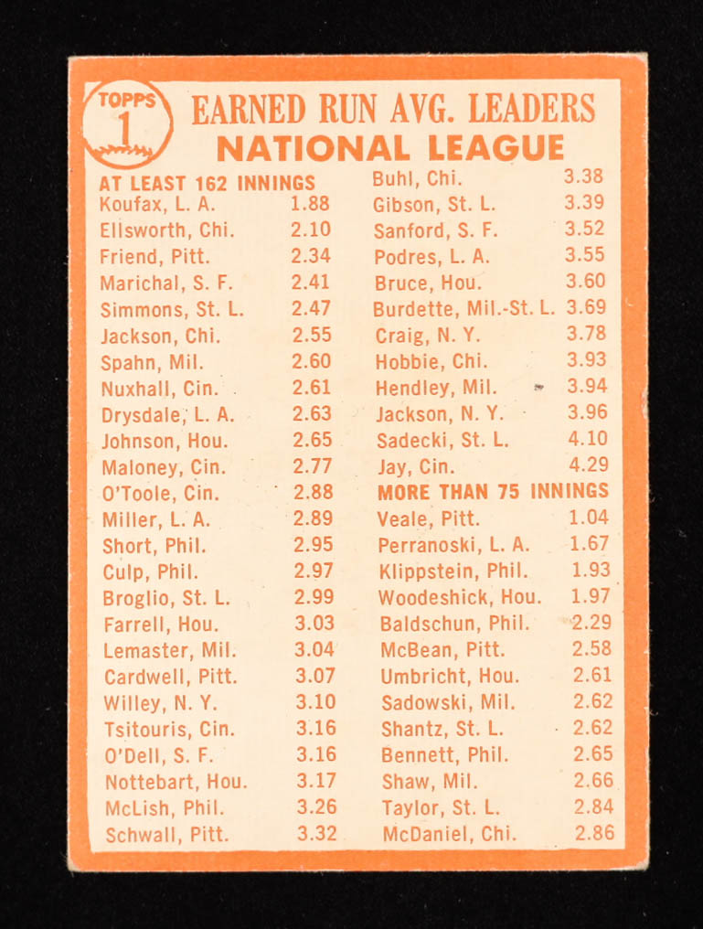 Sandy Koufax / Dick Ellsworth / Bob Friend 1964 Topps #1 NL ERA Leaders